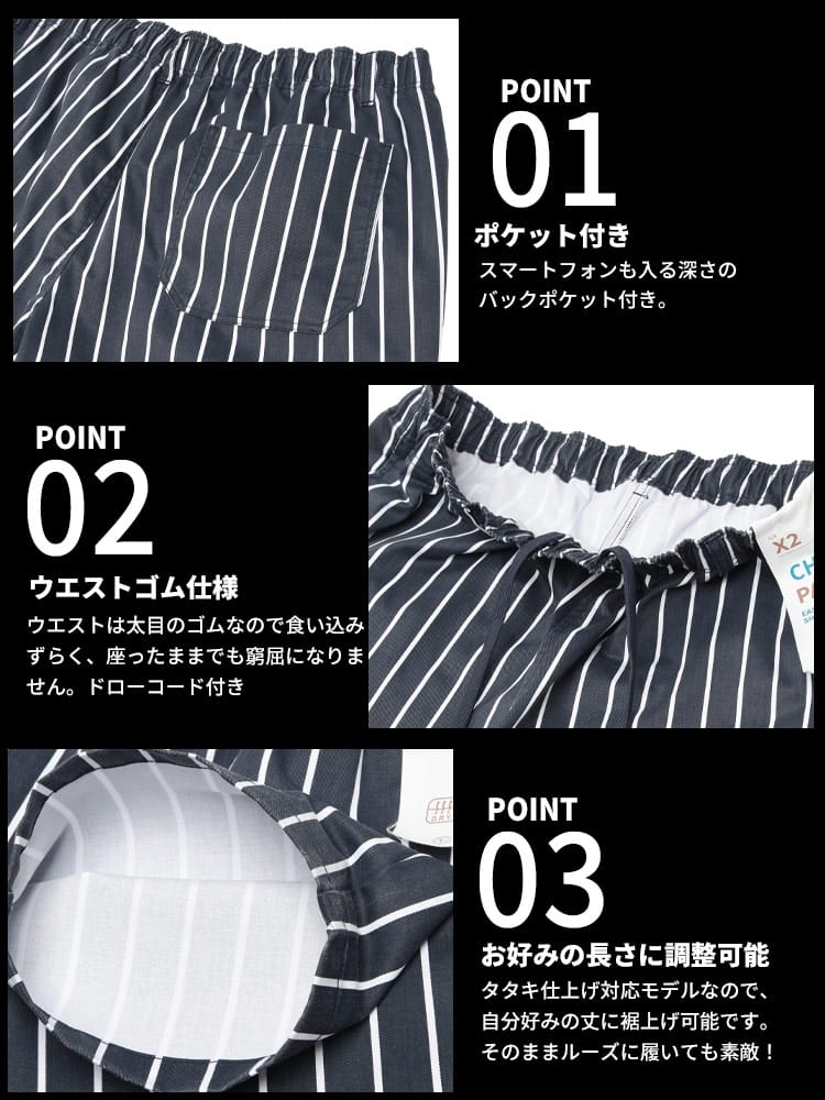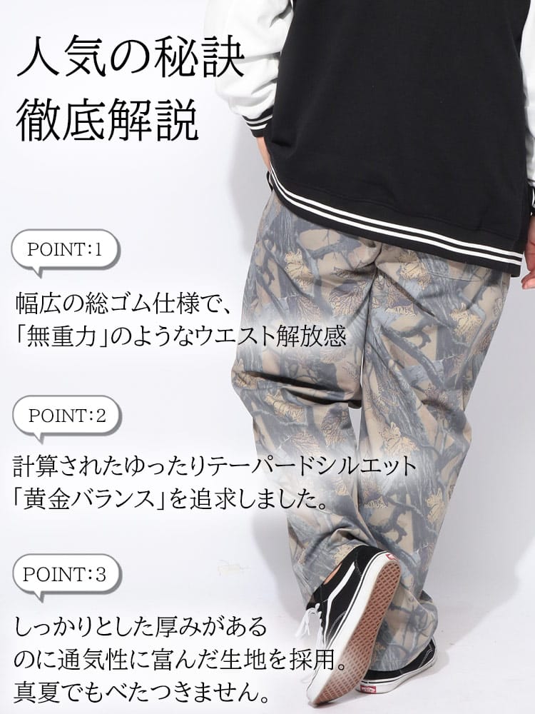 「B&T CLUB」から、トレンド感溢れるリラックスシルエットに機能性をプラスした、大人のシェフパンツが登場しました。もともと厨房で働くシェフたちの仕事着がルーツのこのパンツは、腰回りのゆとりと動きやすさが最大の特徴です。本作では、夏場でもベタつかず快適に過ごせるドライ機能を備え、さらりとした質感を持続。存在感のあるチェック柄やストライプ柄のバリエーションが、シンプルなコーディネートに程よいアクセントを加えてくれます。ワイドな設計ながら裾にかけて緩やかに細くなるテーパードラインにより、大きいサイズの方でも野暮ったくならずスマートな印象に。ウエストゴム仕様で長時間履いても疲れにくく、家でのリラックスタイムから街歩きまで、幅広く頼れる一本です。