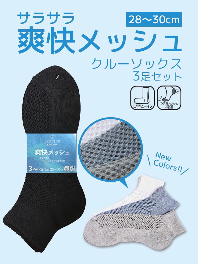 爽快メッシュのクルーソックス3足セットは、優れた通気性と快適なフィット感を提供します。L字型デザインで足の形に合わせてしっかりとサポートし、つま先とかかとの補強で耐久性も抜群。ビジネスシーンやデイリーウェアとして、長時間穿いてもタフに足をサポートしてくれます。