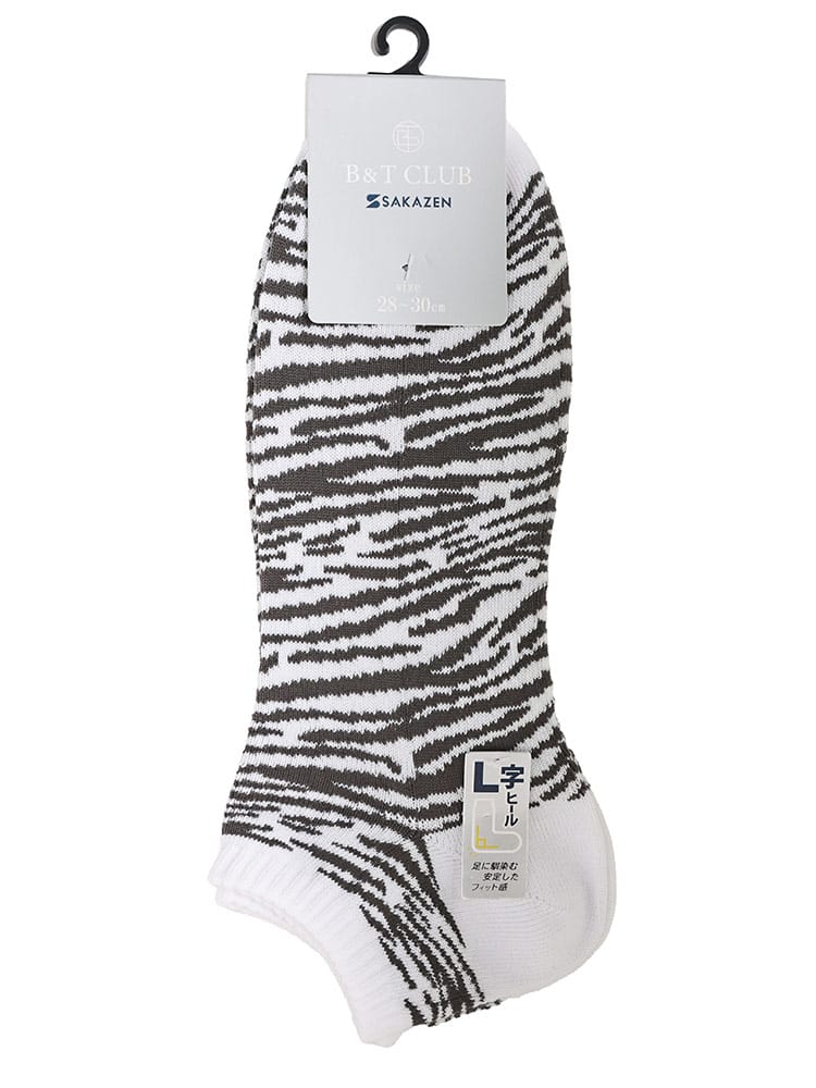 ゼブラ柄のL字型スニーカーソックスは、ファッションと機能性を兼ね備えたアイテムです。アンクル部分がL字型にカットされているため、スニーカーを履いた際に見える部分にアクセントが加わります。このデザインは、シューズとの摩擦を減らし、足の快適さを保ちながら、スタイリッシュな見た目を提供します。目を引くデザインで、カジュアルな服装からスポーティーなスタイルまで、幅広いファッションにマッチします。素材は通気性が高く、速乾性に優れたファブリックを使用しており、長時間の使用でも快適さを保つことができます。