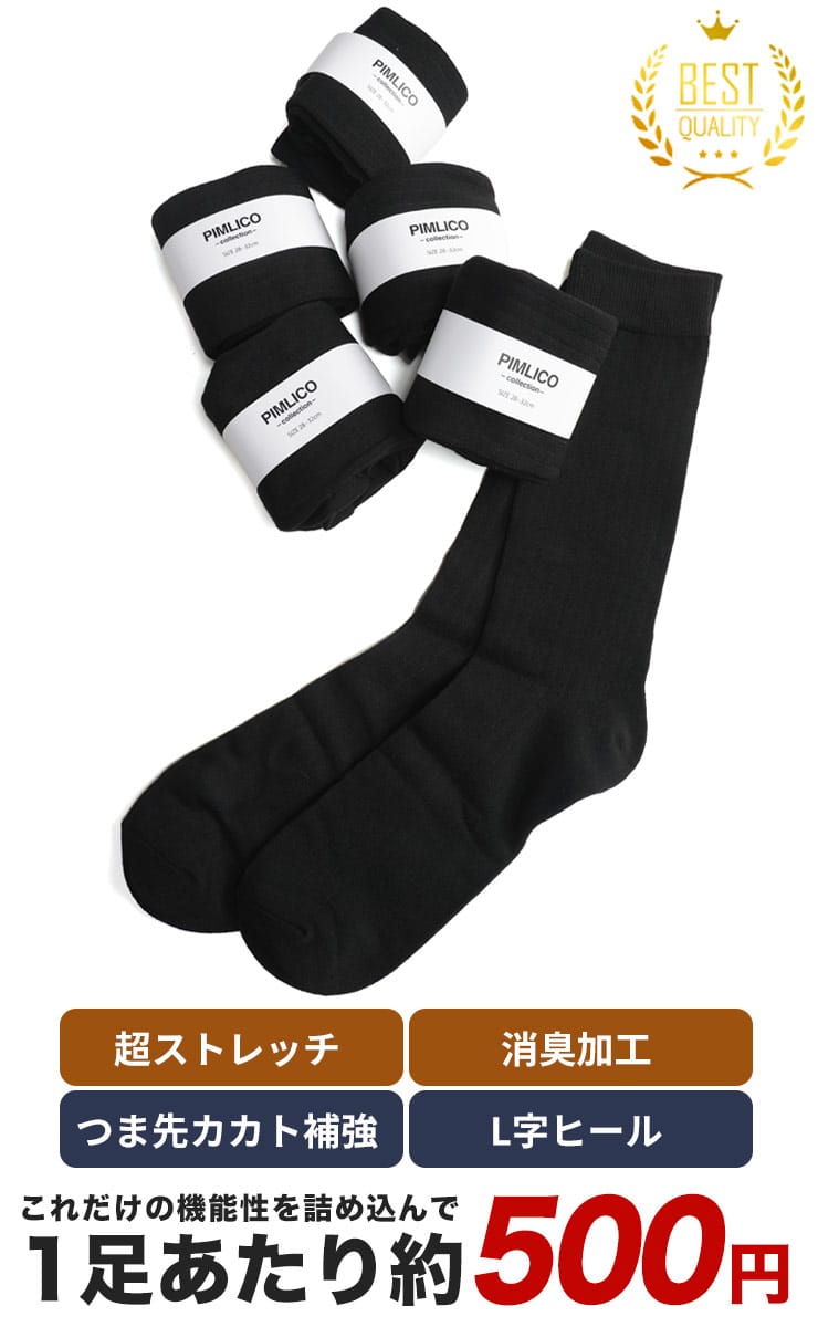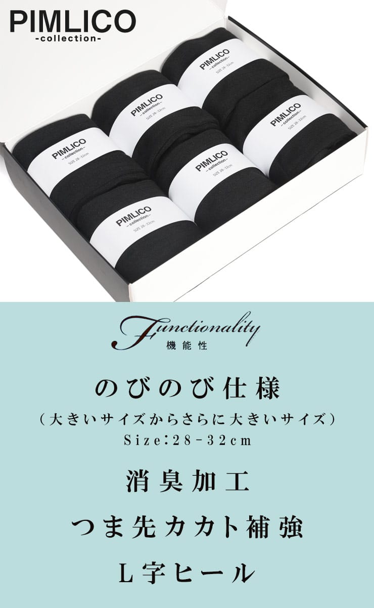 PIMLICO ストレッチ 消臭 リブ ビジネスソックス 6足セット。一日中快適に過ごせる、高機能ビジネスソックスPIMLICOのビジネスソックスは、伸縮性に優れたスーパーストレッチ素材を使用し、28cmから32cmまで幅広いサイズに対応。一日中快適な履き心地を実現します。消臭機能: 臭いを抑え、清潔さを保ちます。リブ構造: フィット感が高く、ずれにくいです。豊富なサイズ展開: 様々な足のサイズに対応します。ビジネスシーンはもちろん、普段使いにもぴったり。プレゼントにもおすすめです。