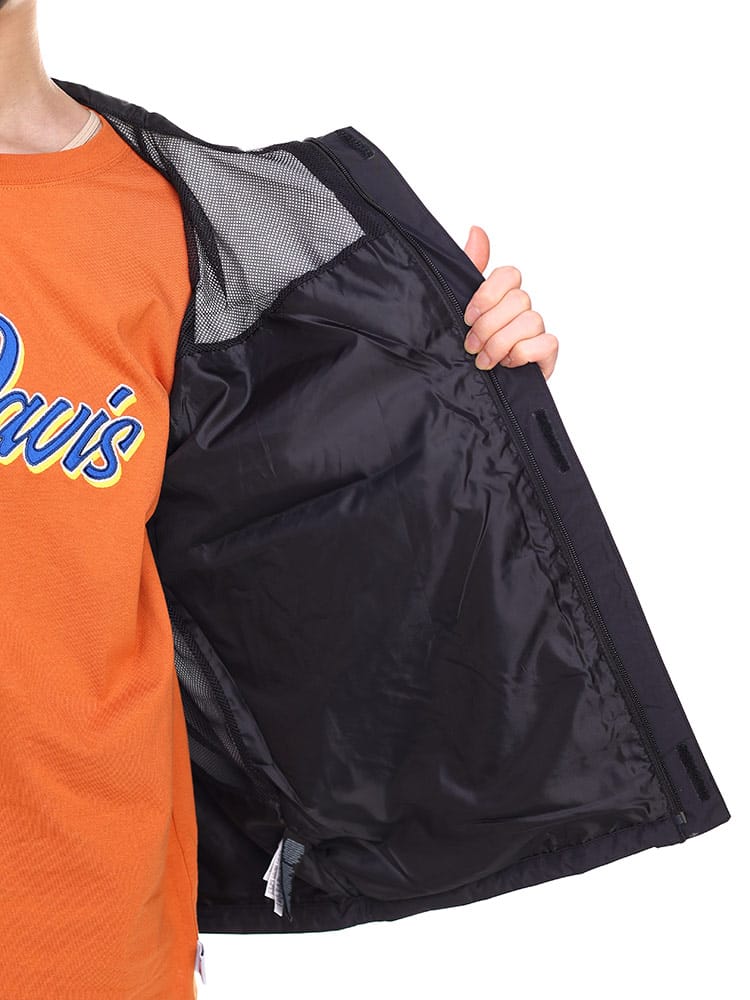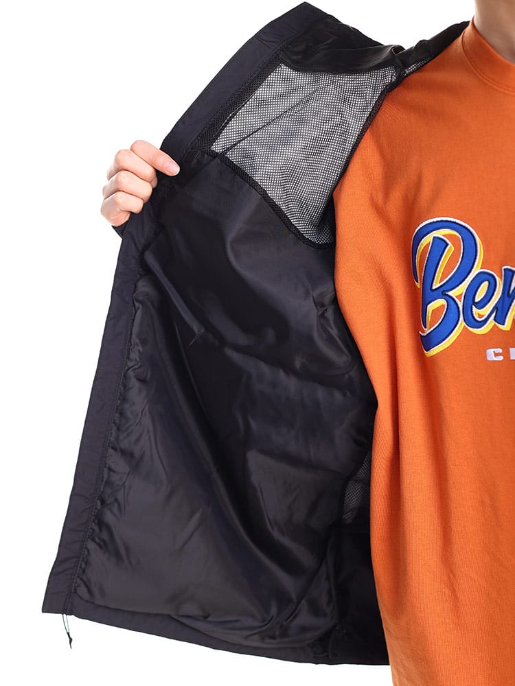 アウトドアのみならずタウンユースにも活躍してくれるナイロン100%のフルジップジャケット。胸元と背面右側のロゴプリントがポイントです。裏地は通気性の良いメッシュを使用しており、ムレにくく快適な着心地。冬季のアウターとしてはもちろん、春先まで使えるオススメの一着です。