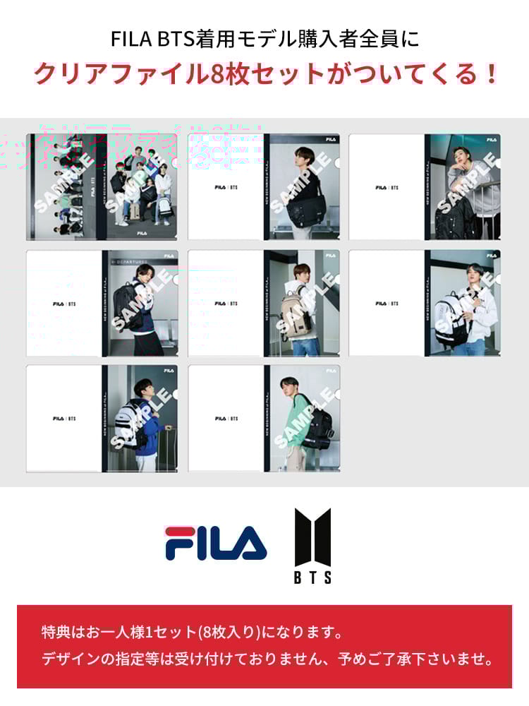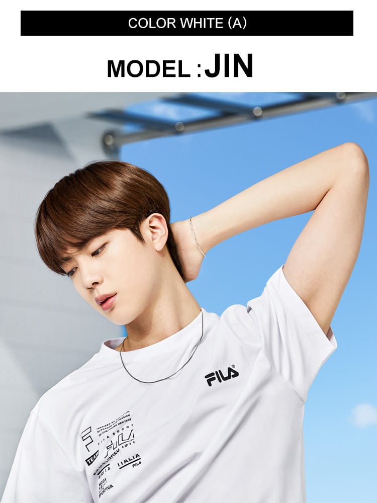 BTS 着用モデルFILA 限定のクルーネック 半袖 Tシャツ。カラーによってデザインが異なるアイテム。首元はベーシックなクルーネック。肌触りの良いコットン生地を使用し、着心地抜群な一枚。左裾にブランドタグ付き。