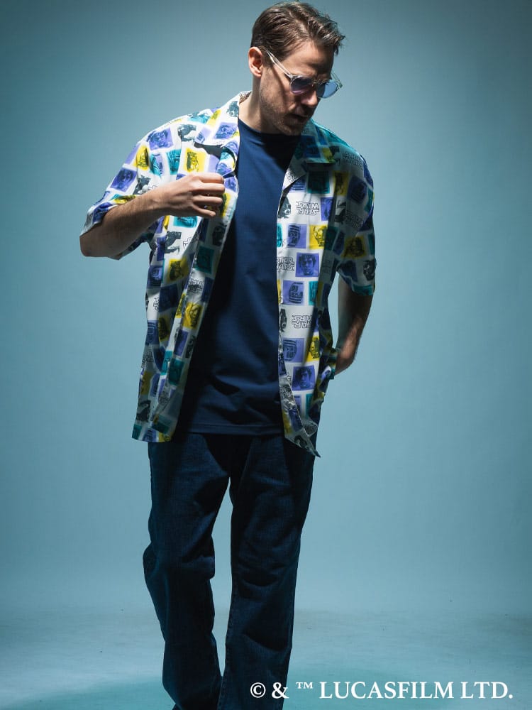 首元に開放感を与えるオープンカラー仕様は、顔周りをスッキリと見せ、リラックス感漂うアロハシャツのような佇まいを実現。