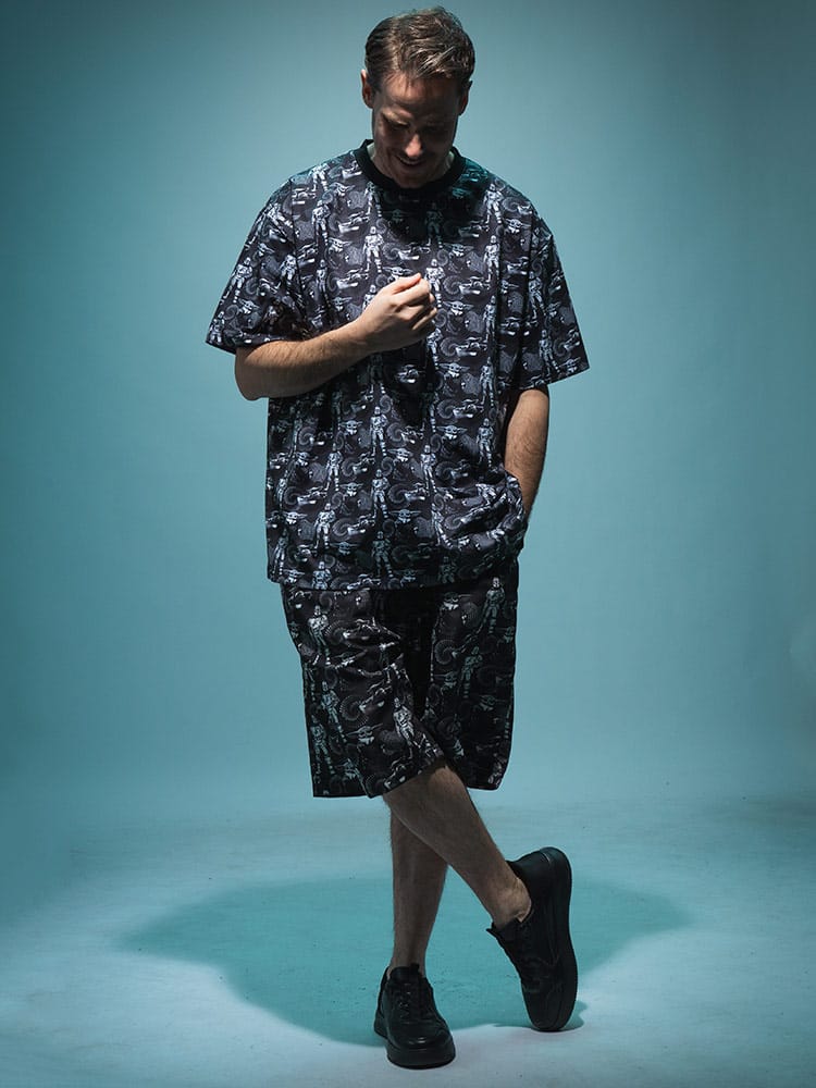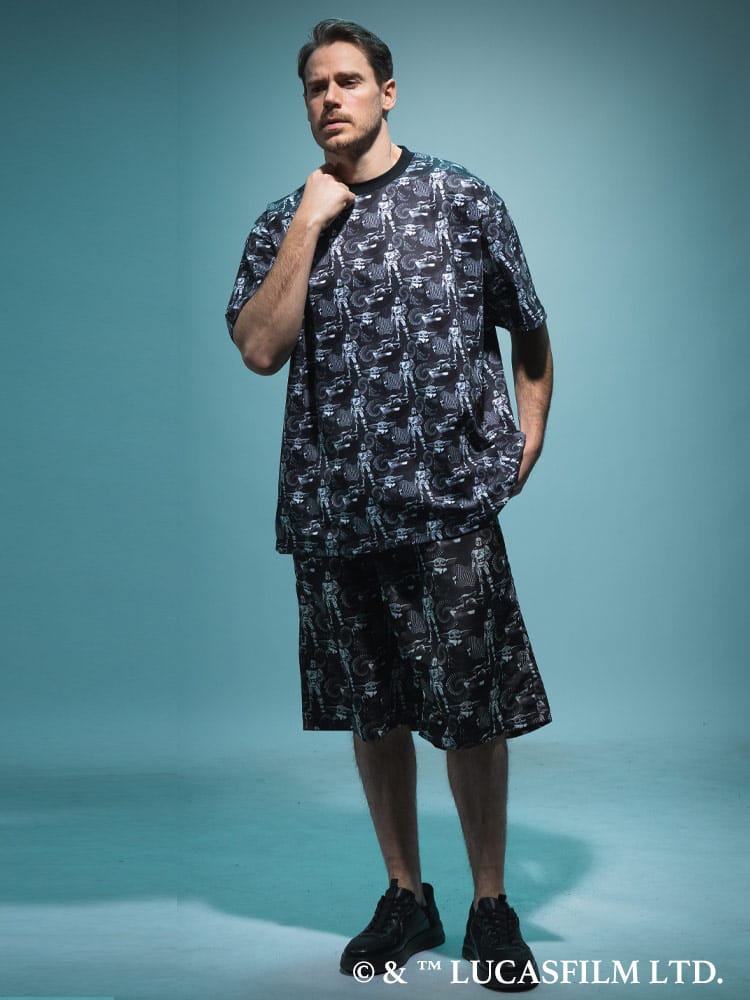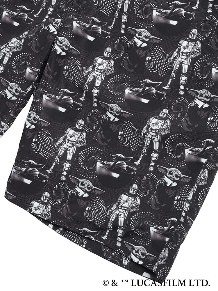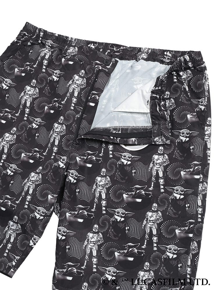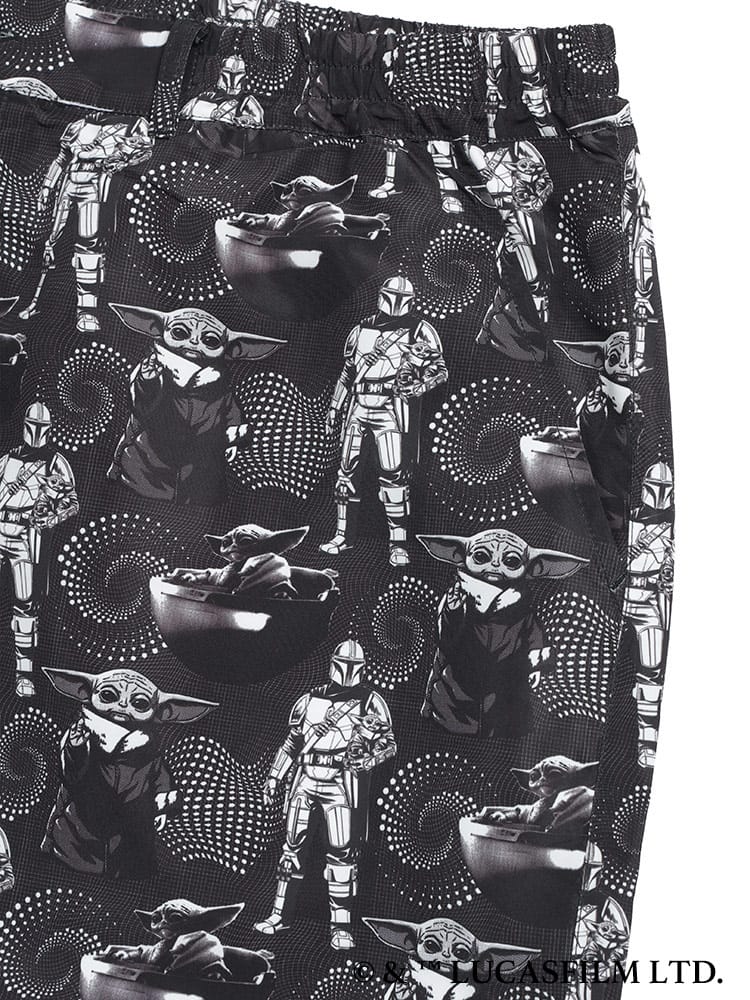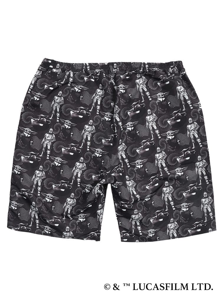 大人気シリーズ「マンダロリアン」のイラストをインパクト抜群にプリントした総柄ショートパンツ。