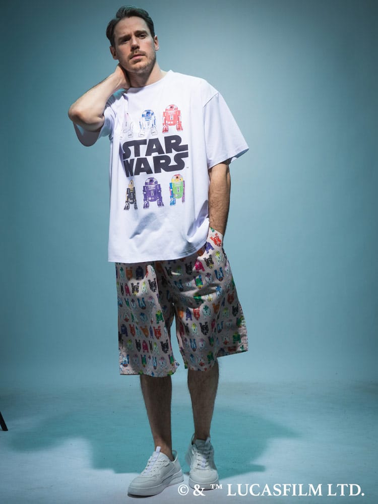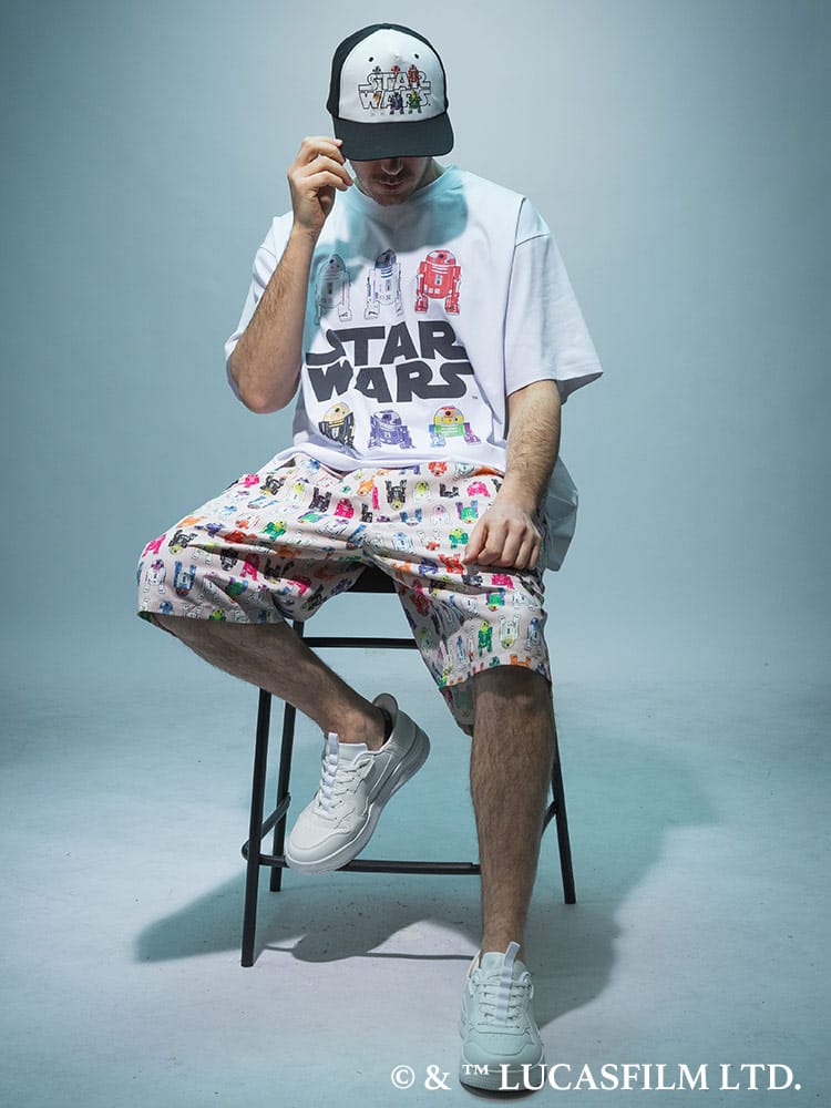 『STAR WARS』に登場するキャラクター「R2-D2」をポップでカラフルに表現したショートパンツ。