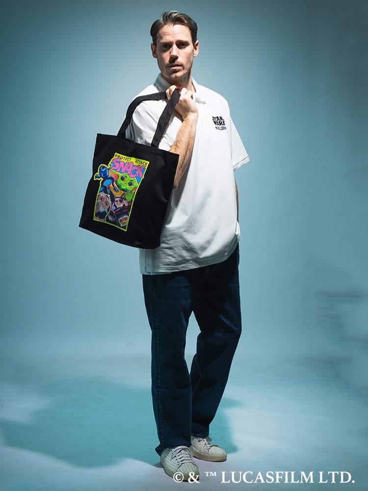 『STAR WARS』『マンダロリアン・アンド・グローグー』のイラストをプリントしたトートバッグ。