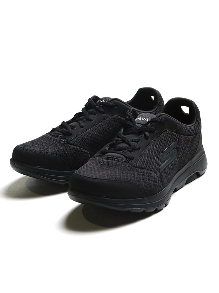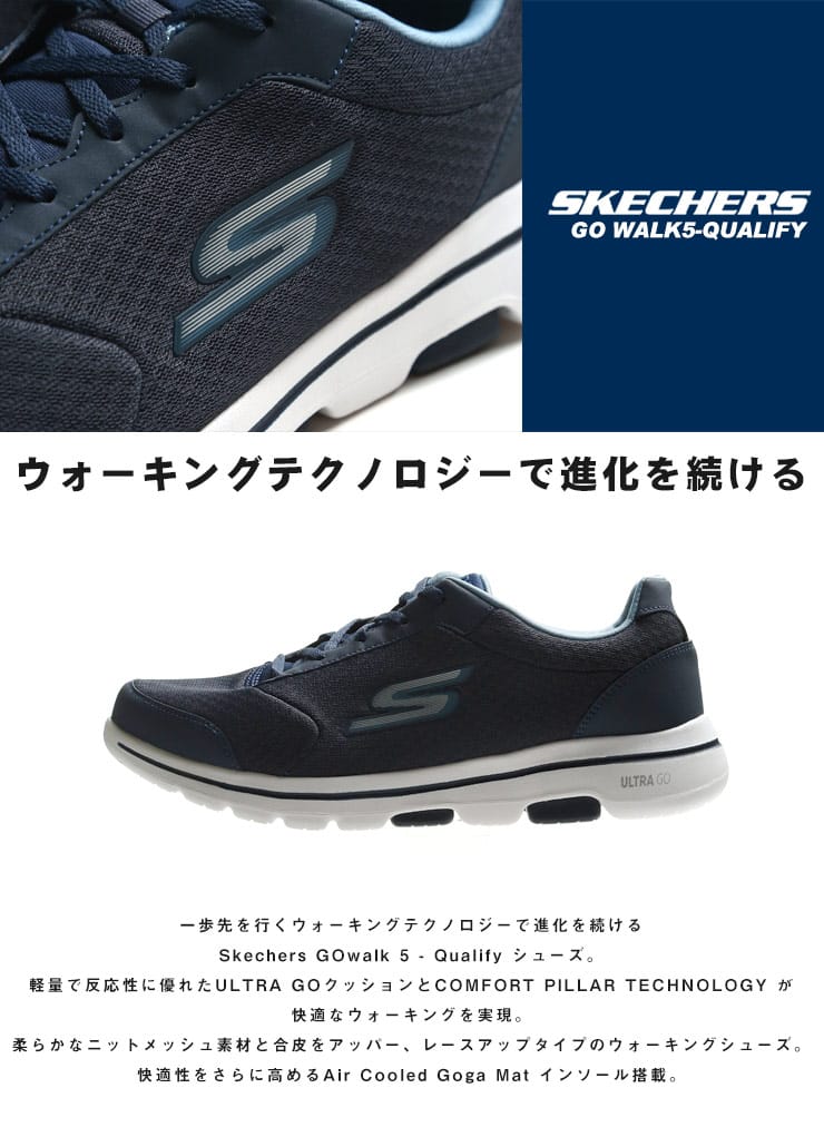 一歩先を行くウォーキングテクノロジーで進化を続けるSkechers GOwalk 5 - Qualify シューズ。軽量で反応性に優れたULTRA GOクッションとCOMFORT PILLAR TECHNOLOGY が快適なウォーキングを実現。柔らかなニットメッシュ素材と合皮をアッパー、レースアップタイプのウォーキングシューズ。快適性をさらに高めるAir Cooled Goga Mat? インソール搭載。
