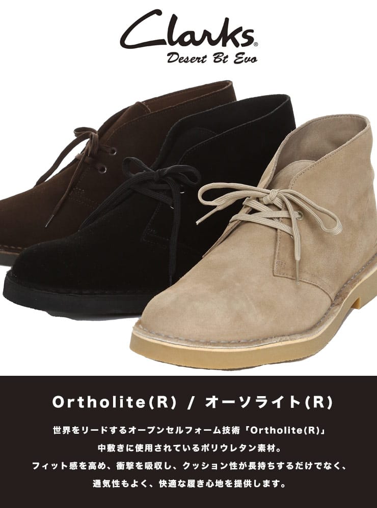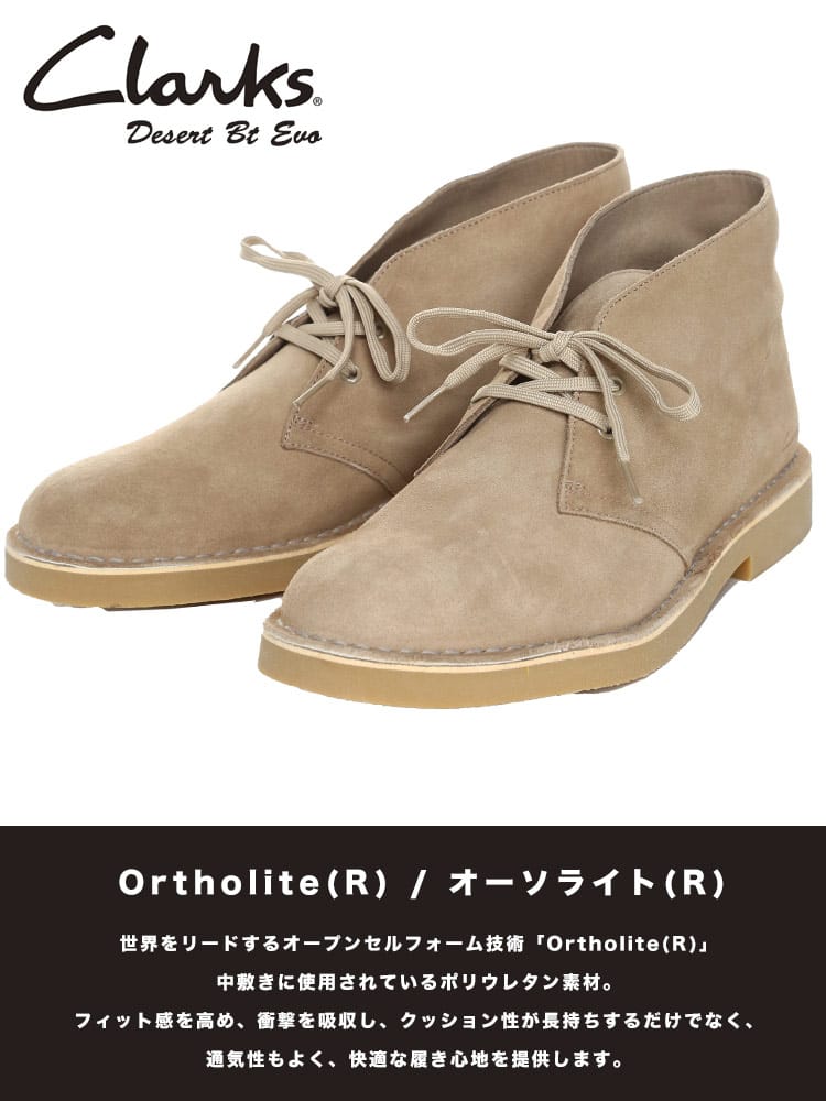 デザートブーツ2の仕様を継承し、新たに価格も刷新した「デザートブーツ エヴォリューション」。ブラックスエードのアッパーは人気の定番色です。フィット感のある形状に、取り外し可能な オーソライト(R)のフットベッドは通気性とクッション性に優れ、耐久性のあるラバーソールが高いグリップ力を発揮します。クラークスオリジナルズのデザートブーツのスタイルをそのままにクッション機能で現代的な履きやすさを取り入れた一足。靴ひもにはリサイクル素材を使用し、環境に配慮しています。