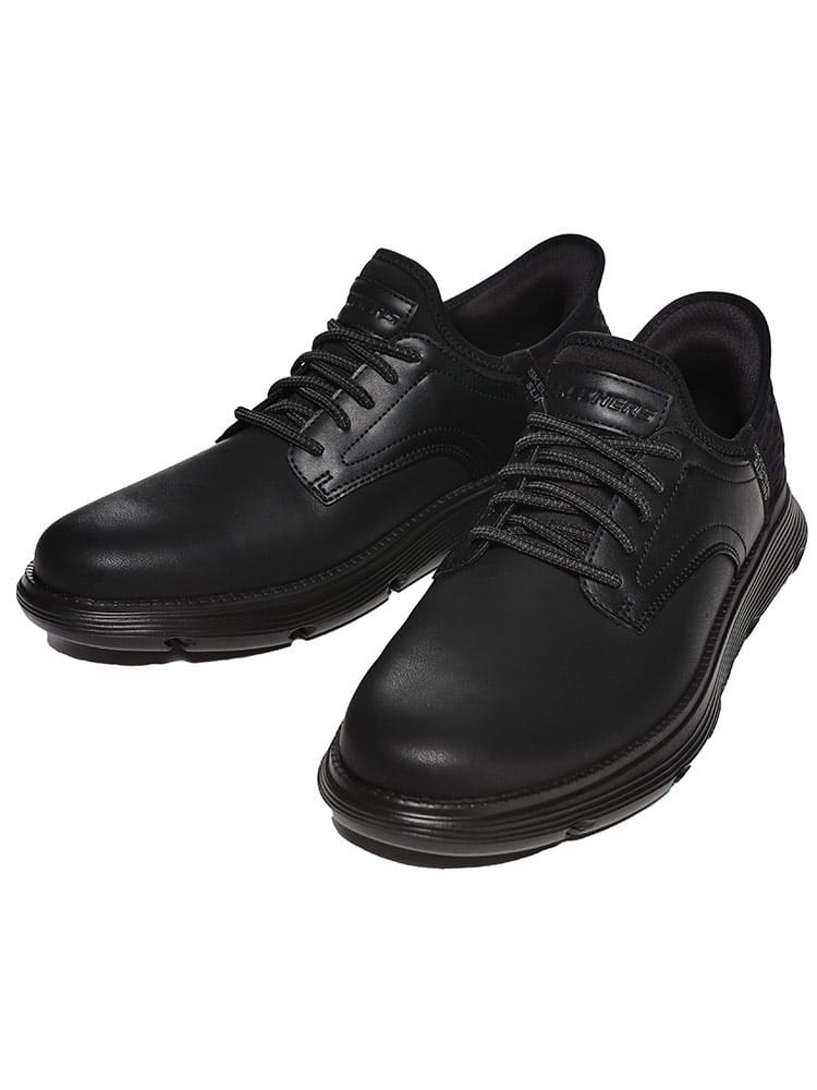 スケッチャーズ ハンズフリー スリップインズ:ガルザ-ガービンで、快適なビジネスカジュアルルックで効率性を高めましょう。ストレッチレースを配したなめらかなレザーのアッパー、スケッチャーズ スリップインズ形状のヒールパネル、木炭を注入したスケッチャーズ エアクールドメモリーフォームのインソール、サポート力を高めるスケッチャーズ ゴガマットアーチが特長です。