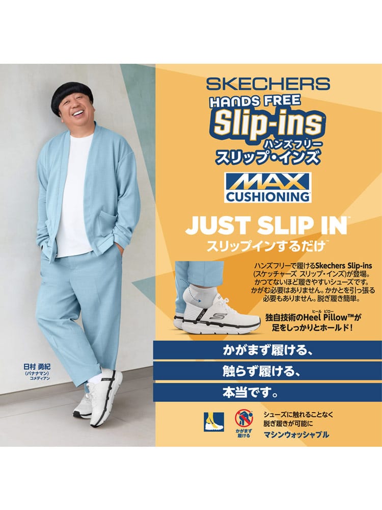 スケッチャーズ ハンズフリー スリップインズで快適な履き心地を実感!独自のヒールピローで足をしっかりと固定するヴィーガンシューズ。ストレッチレース付きのエンジニアードメッシュのアッパー、クッション性のあるエアクールドメモリーフォームのインソールが特長です.