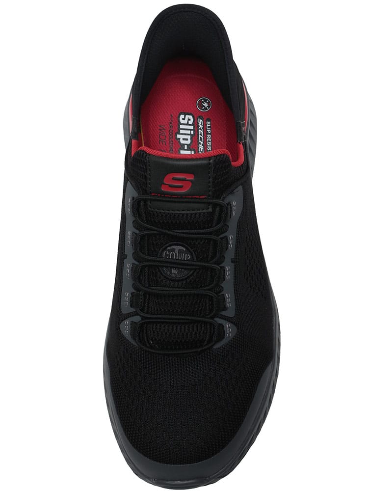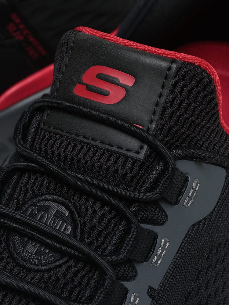 SKECHERS スリップインズ ワークティリド フェチットは、大きいサイズのメンズ向けレースアップスニーカーです。優れた防滑機能と感電防止加工が施されており、安全性が求められるワークシーンに対応。快適な履き心地と、スムーズに脱ぎ履きできるスリップインズデザインが特徴です。
