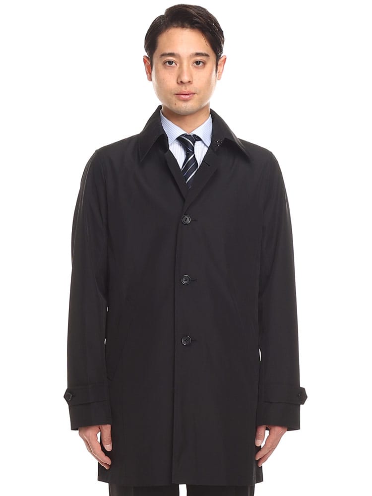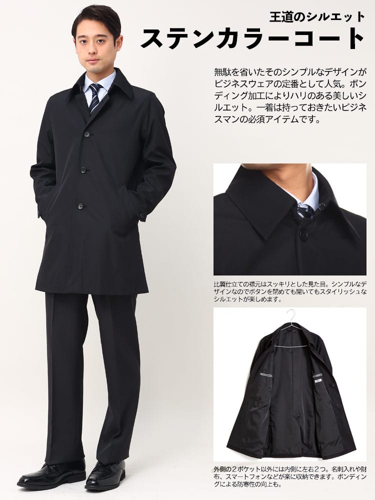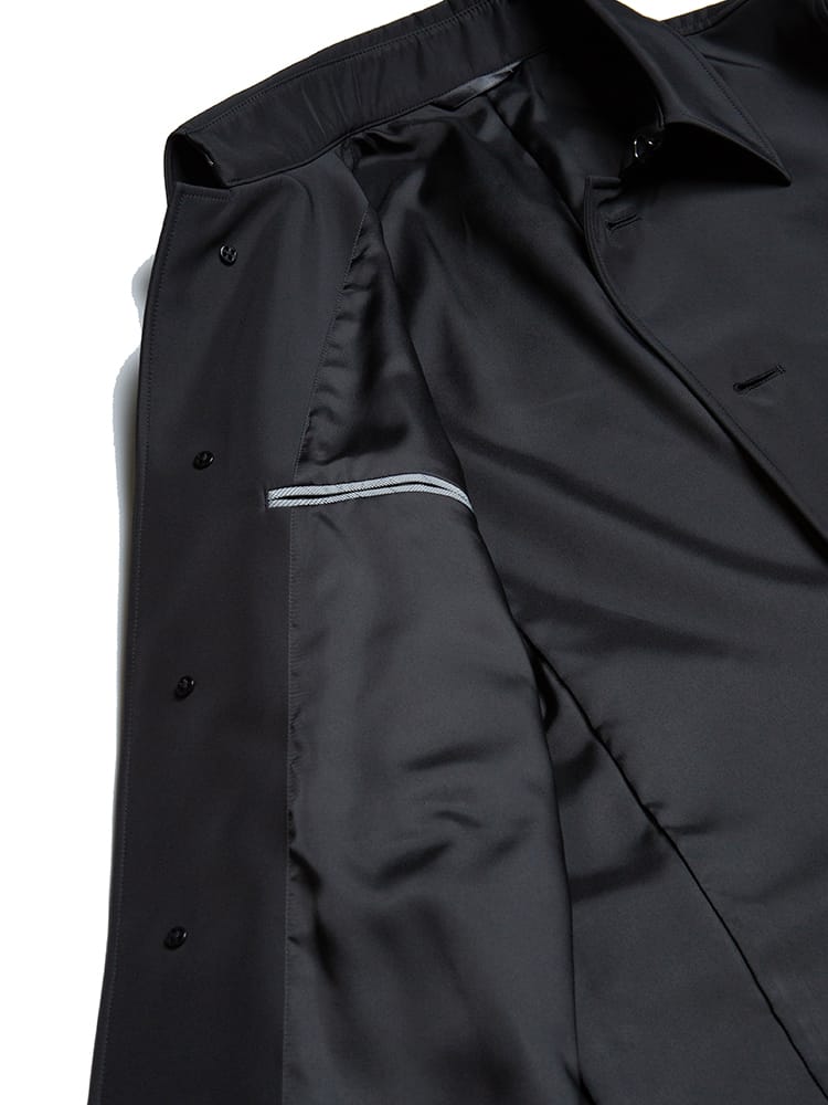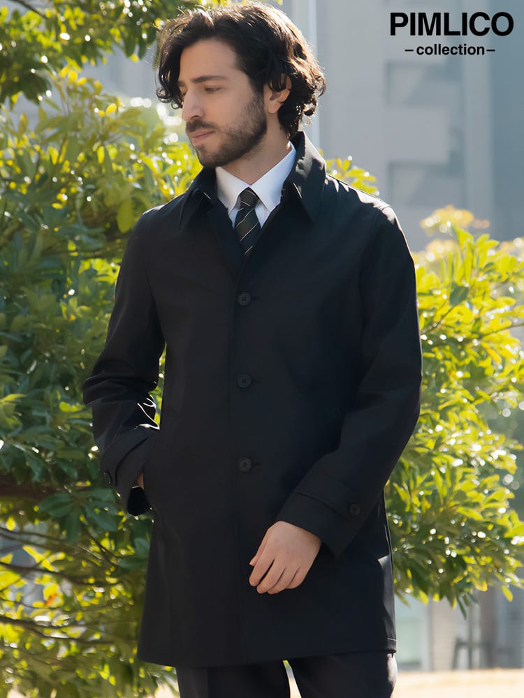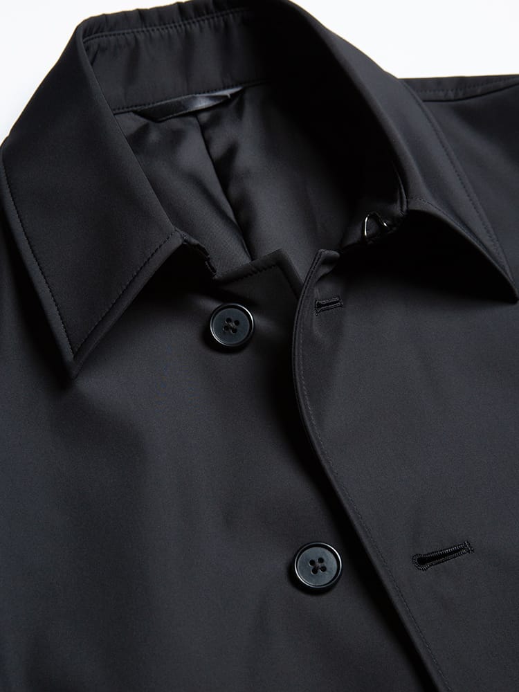 ほどよい光沢と独特のハリがあるボンディング加工を施したステンカラーコート。スタイリッシュなシャード―ストライプ柄で仕上げました。センターベンツ入りの軽やかなデザインも魅力。サッと羽織るだけで洗練された大人のスタイルが完成します。