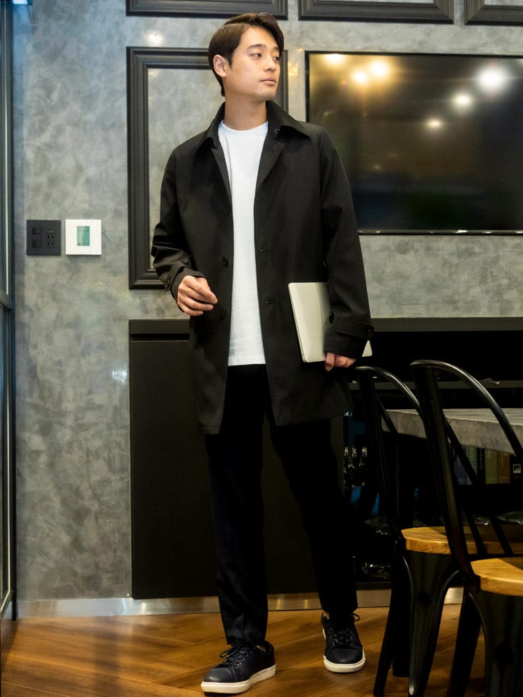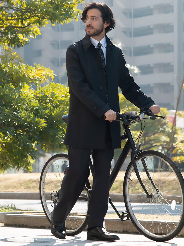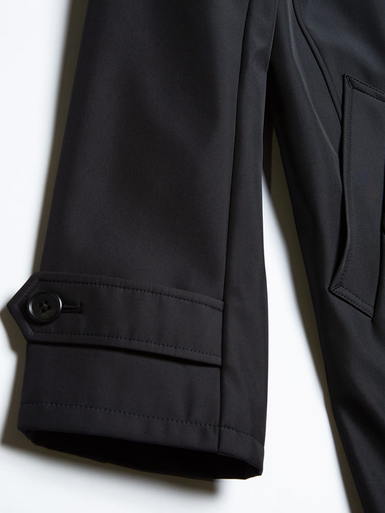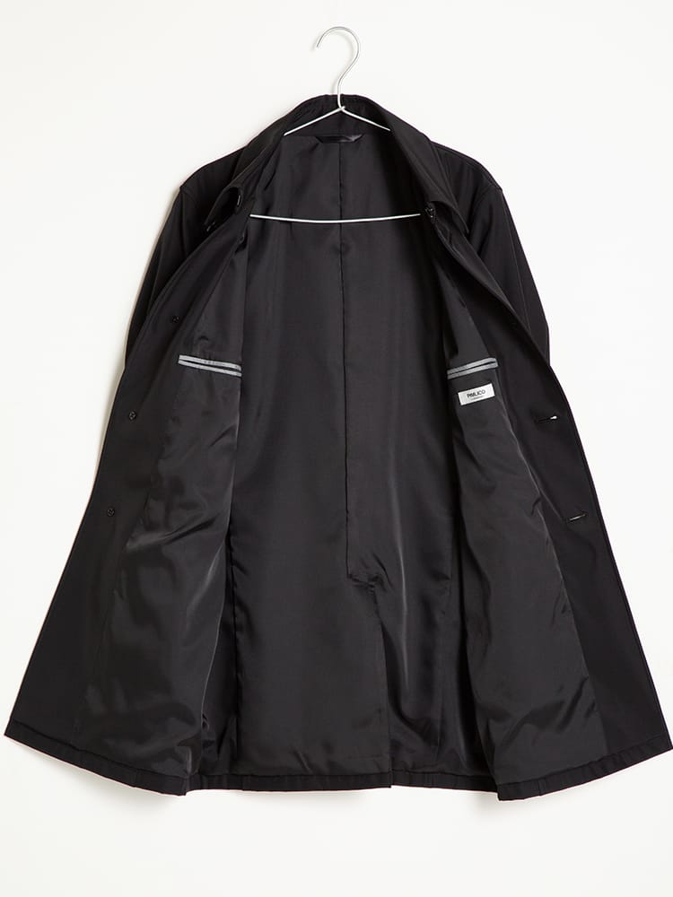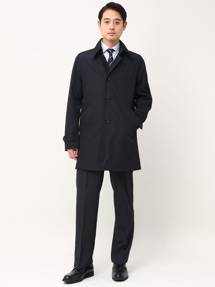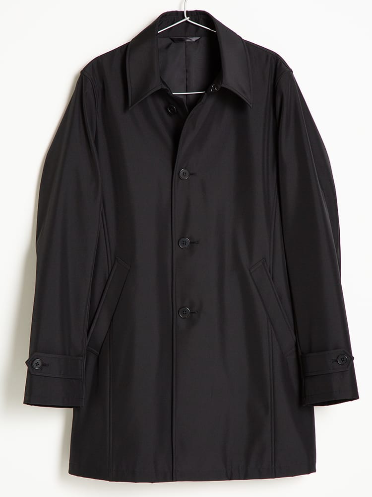 ほどよい光沢と独特のハリがあるボンディング加工を施したステンカラーコート。スタイリッシュなシャード―ストライプ柄で仕上げました。センターベンツ入りの軽やかなデザインも魅力。サッと羽織るだけで洗練された大人のスタイルが完成します。