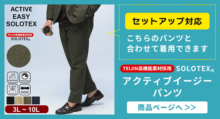 B&T CLUB ACTIVE EASY SOLOTEX JACKETは、大きいサイズのメンズ向けストレッチシングルイージージャケットです。ソロテックス素材による抜群のストレッチ性と軽やかな着心地が特徴。ビジネスカジュアルからきれいめスタイルまで幅広く対応し、様々なシーンで活躍します。充実した内外ポケットも魅力。動きやすさと上品さを兼ね備えた、大人のためのコンフォートジャケットです。