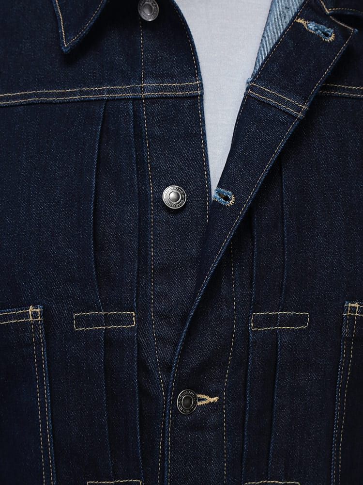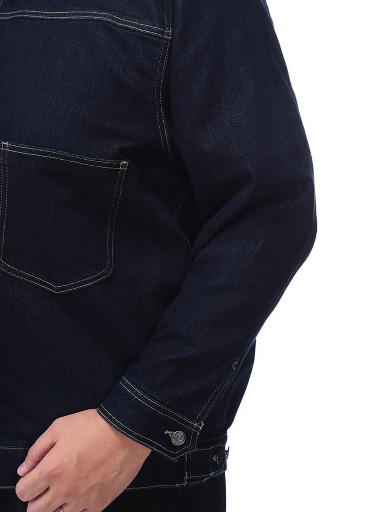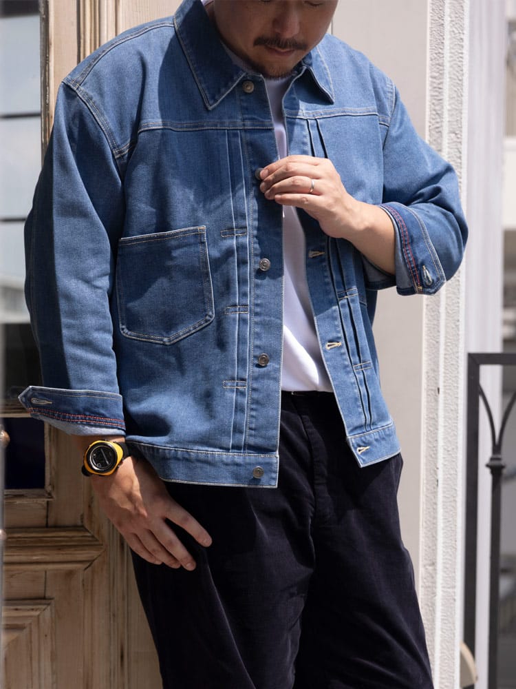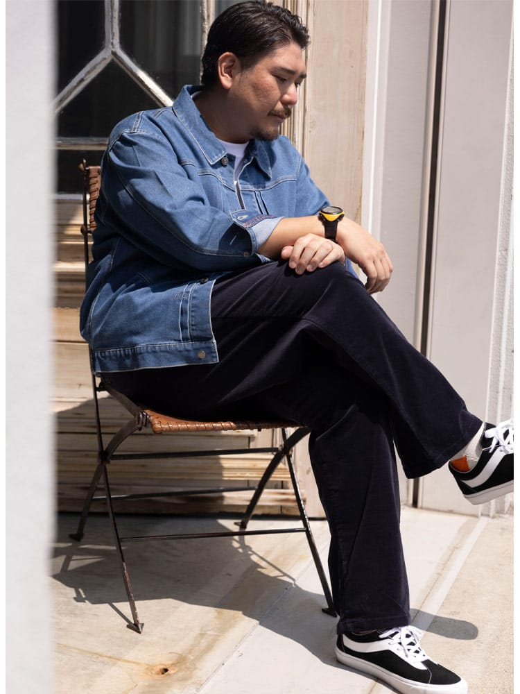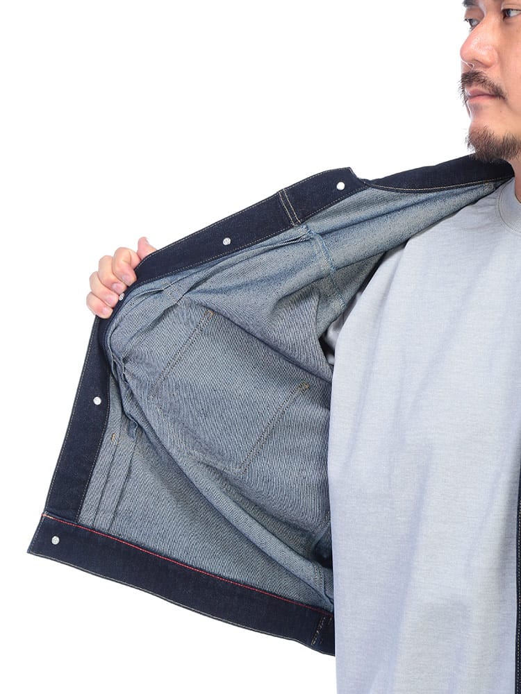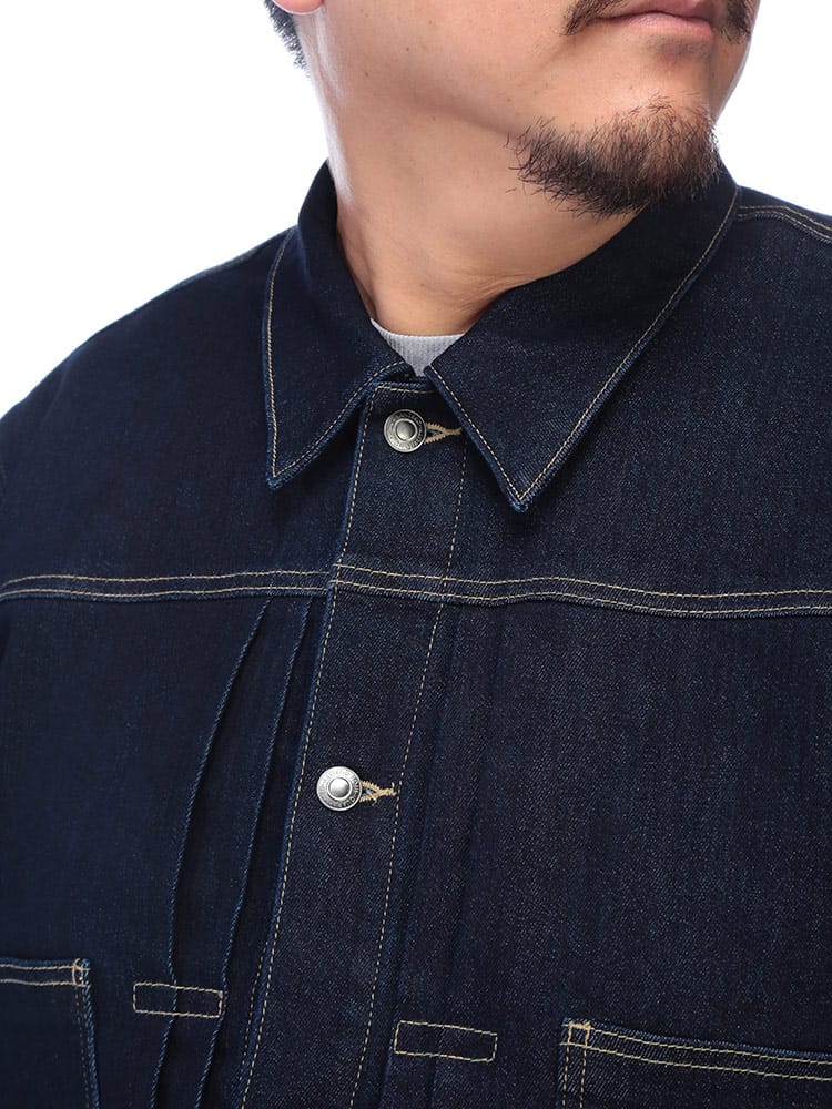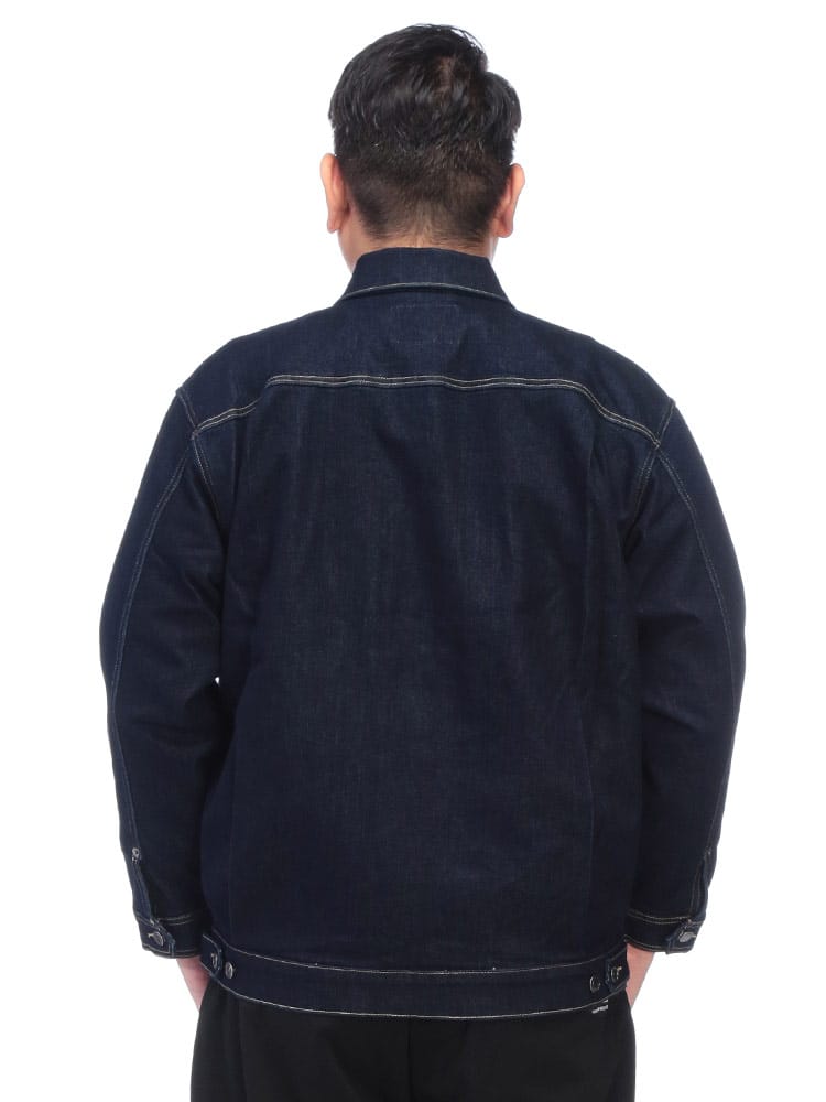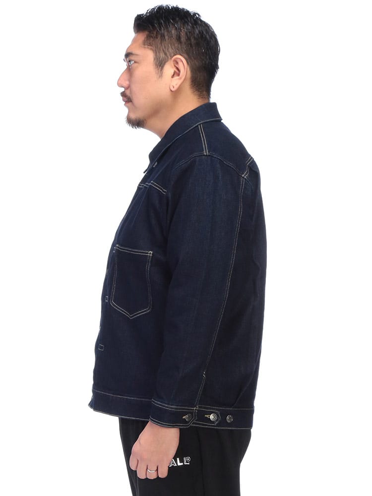 SOLOTEXが叶える、次世代のGジャン。大きいサイズのスペシャリティブランドB&T CLUB(ビーアンドティークラブ)から、クラシックなデザインに革新素材を融合させたSOLOTEX 2ndタイプ ストレッチ デニム ジャケットが登場。Gジャンの王道である2ndタイプの無骨なスタイルはそのままに、素材には高機能繊維SOLOTEXをブレンド。従来のデニムにはない「ソフト感」と「形態回復性」を実現しました。シワになりにくく、いつでも美しいシルエットをキープします。最大の魅力は、その驚異的なストレッチ性。ヘビーアウター特有の窮屈さがなく、ストレスフリーな動きを提供します。サイドにはボタン式のサイドアジャスターを配置し、細かなフィット感の調整が可能。大きいサイズでもシャープに決まる、快適さとスタイルを両立した、まさに進化するデニムです。