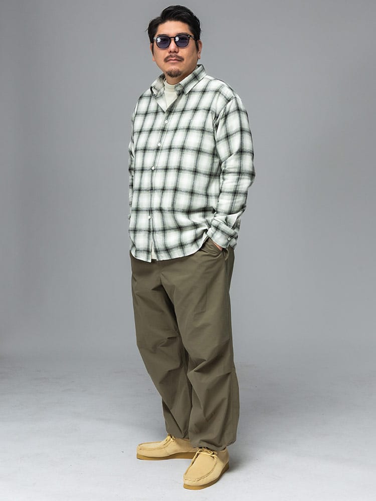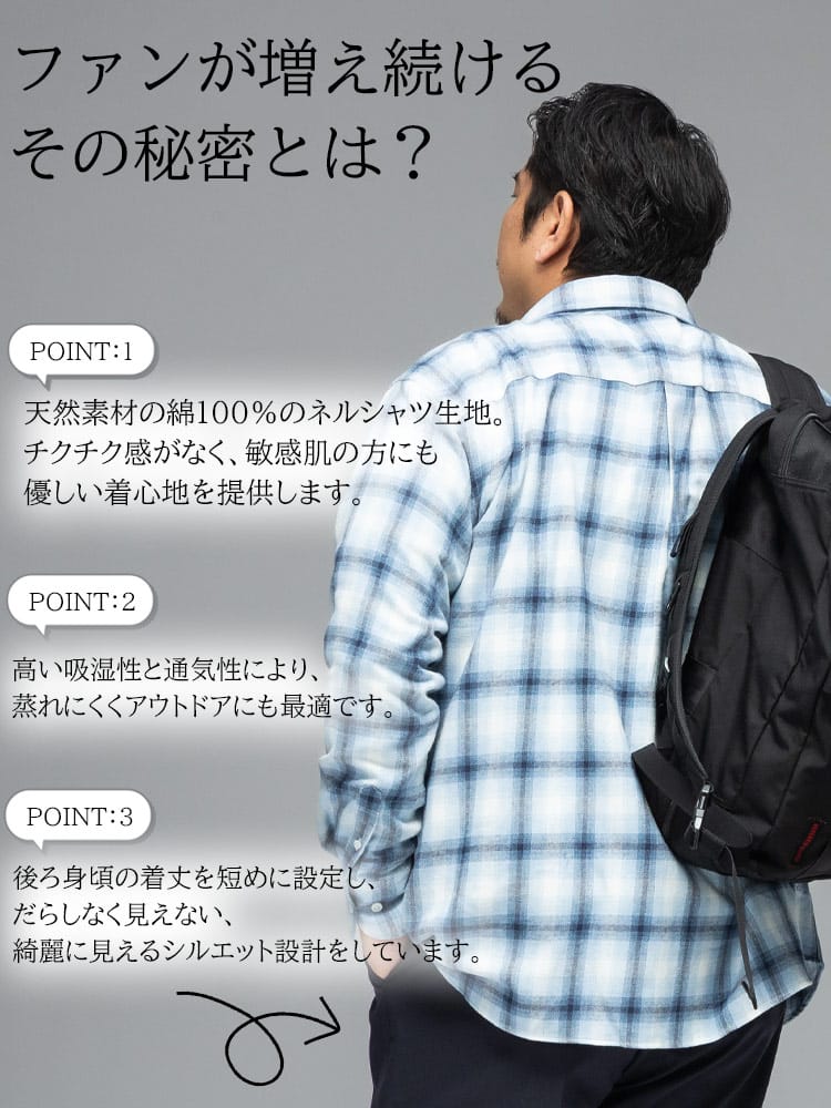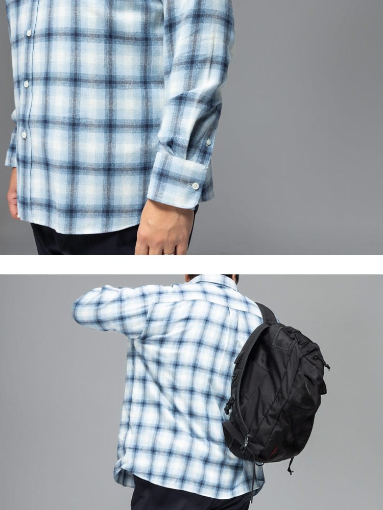 デザインは、仕事から普段使いまで全てを叶える万能シンプル設計です。豊富なチェック柄バリエーションは、着こなしに季節の変わり目らしい軽やかさと彩りをプラスします。そして、胸元の実用的なアウトポケットが、アメカジらしいアクセントになります。カットソーやTシャツの上にライトアウター感覚でさっと羽織るだけで様になり、インナー使いしてもごわつかないため、急な気温変化にも対応可能な長袖シャツです。