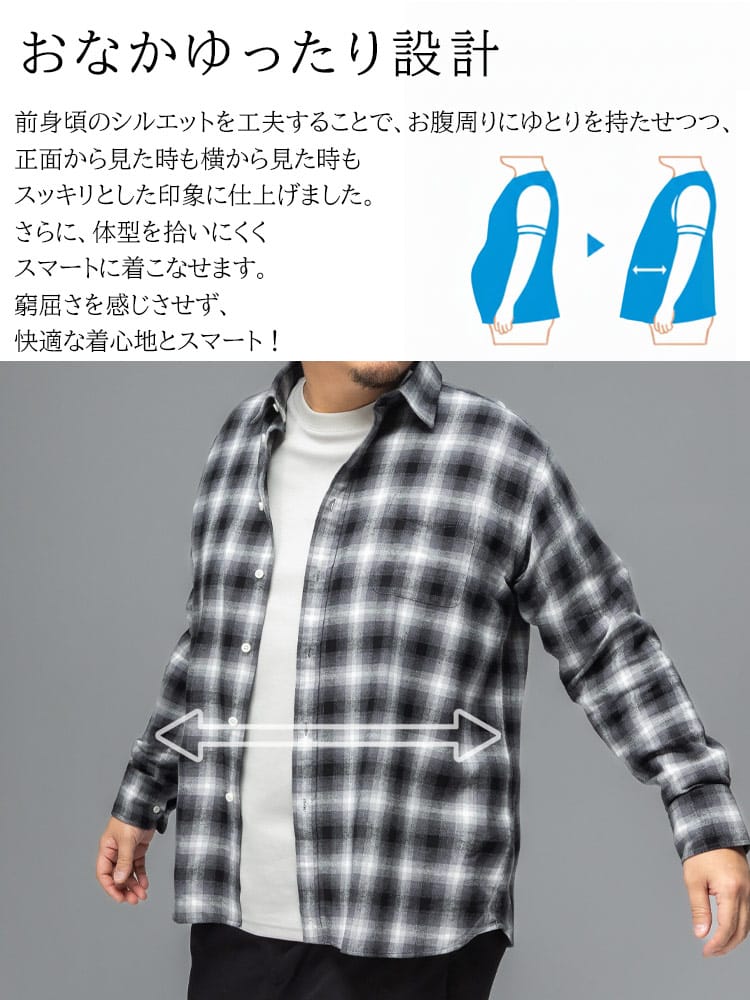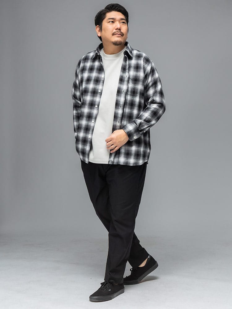 カジュアルスタイルの定番を、3Lから10Lまでの豊富な大きいサイズで快適に着こなせる一着です。