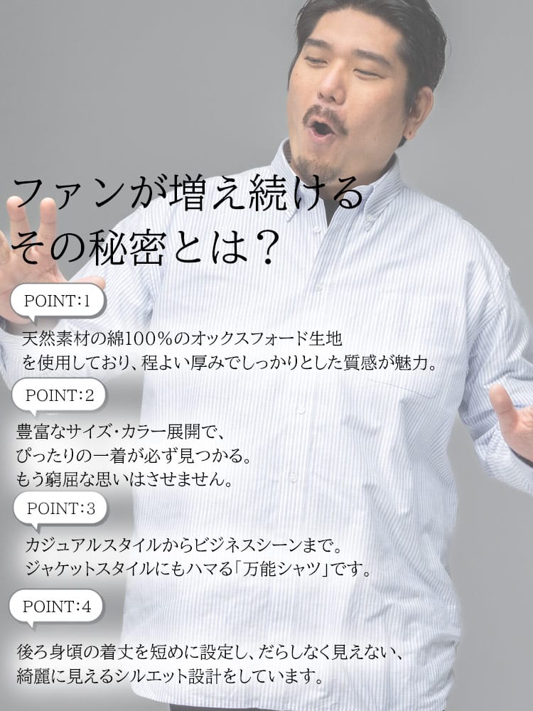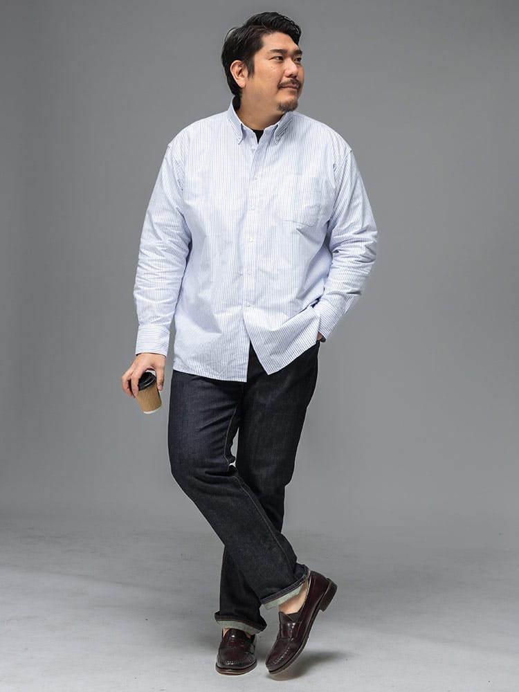大きめサイズに特化したB&T CLUBが、素材とシルエットにこだわり抜いた新定番のオックスフォードシャツをお届けします。