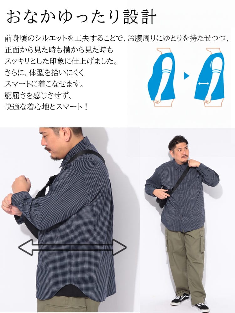 大きいサイズ専門の設計 B&T CLUBならではの、お腹周りや腕周りにゆとりを持たせつつ、野暮ったく見えない黄金比のパターンを採用しています。