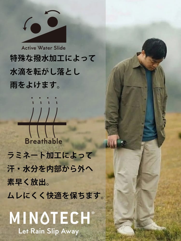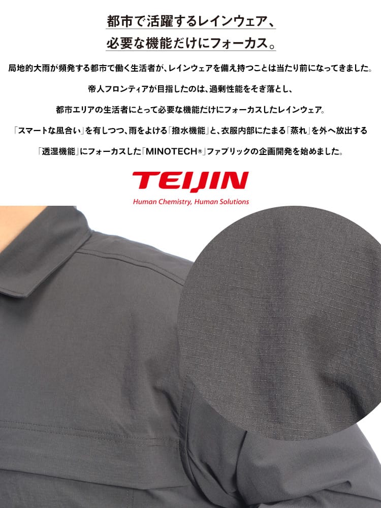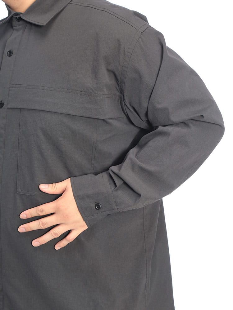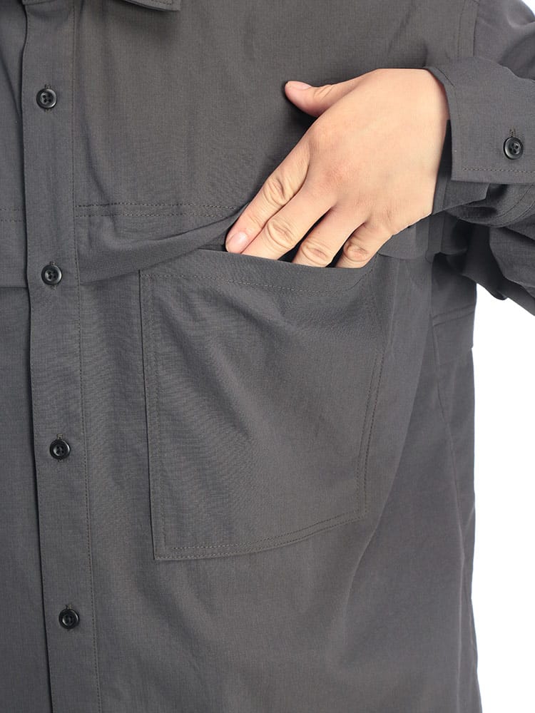 帝人フロンティアが開発した高機能ファブリック「MINOTECH®(ミノテック)」を採用した、オーバーサイズ仕様のユーティリティシャツです。