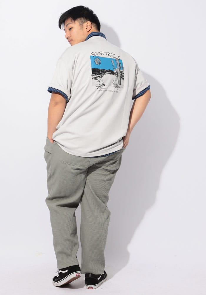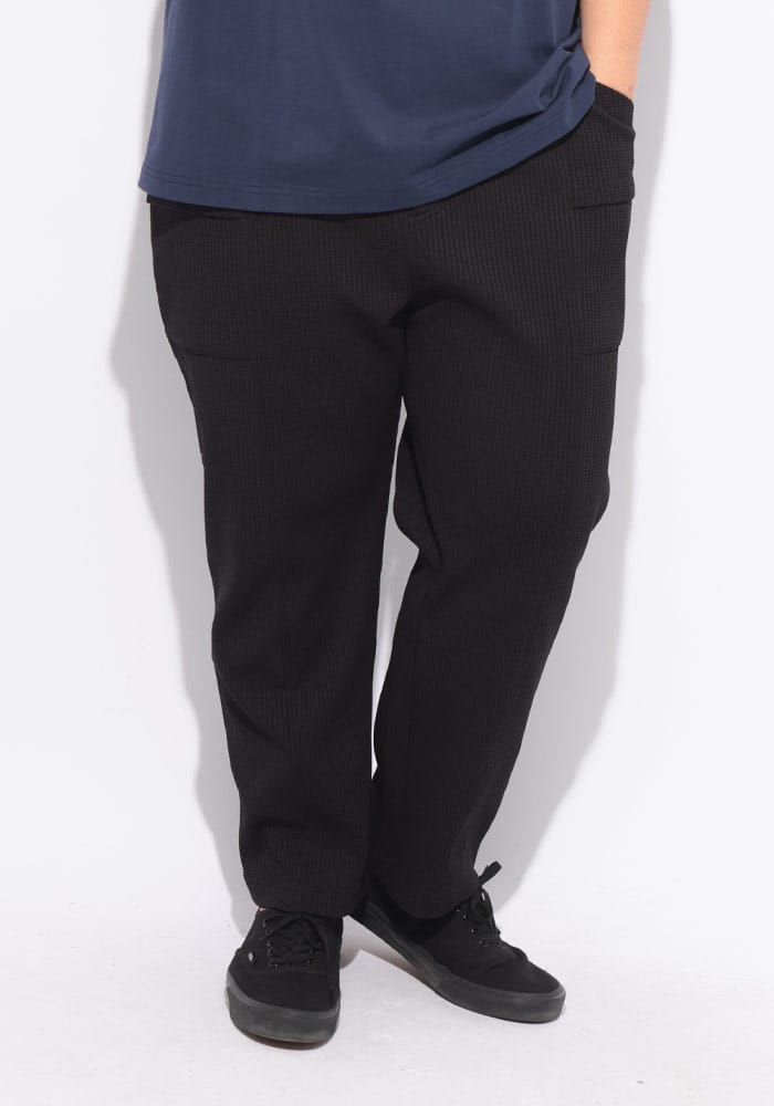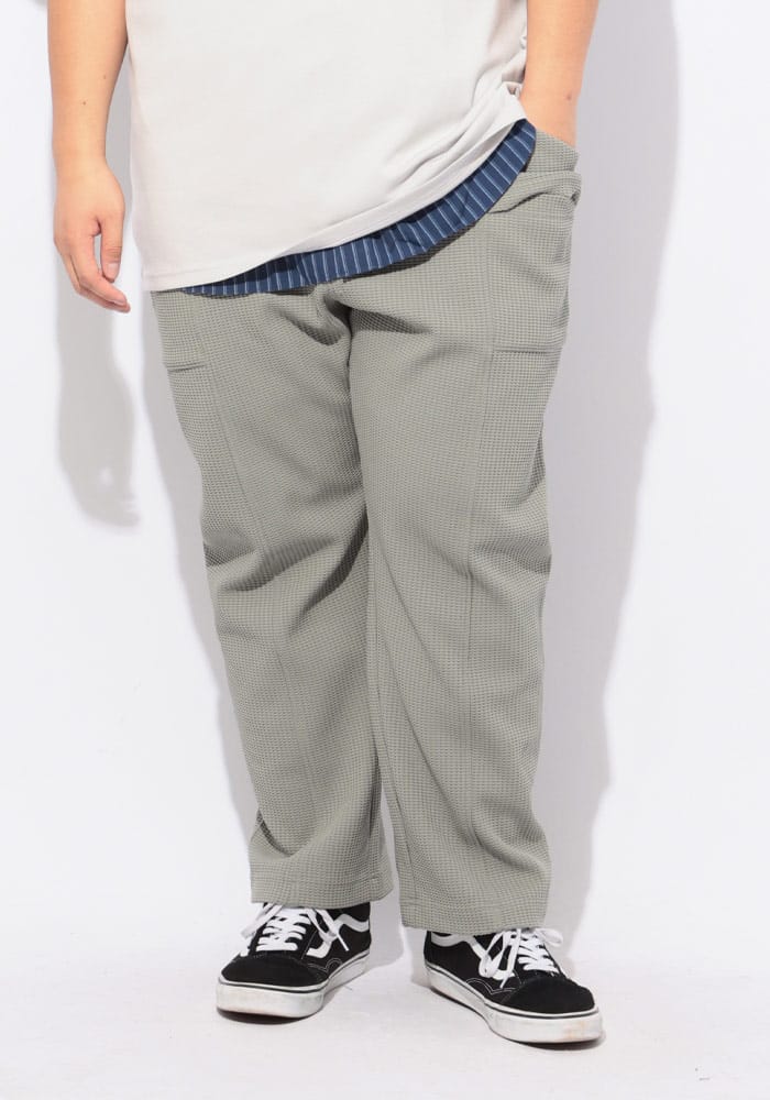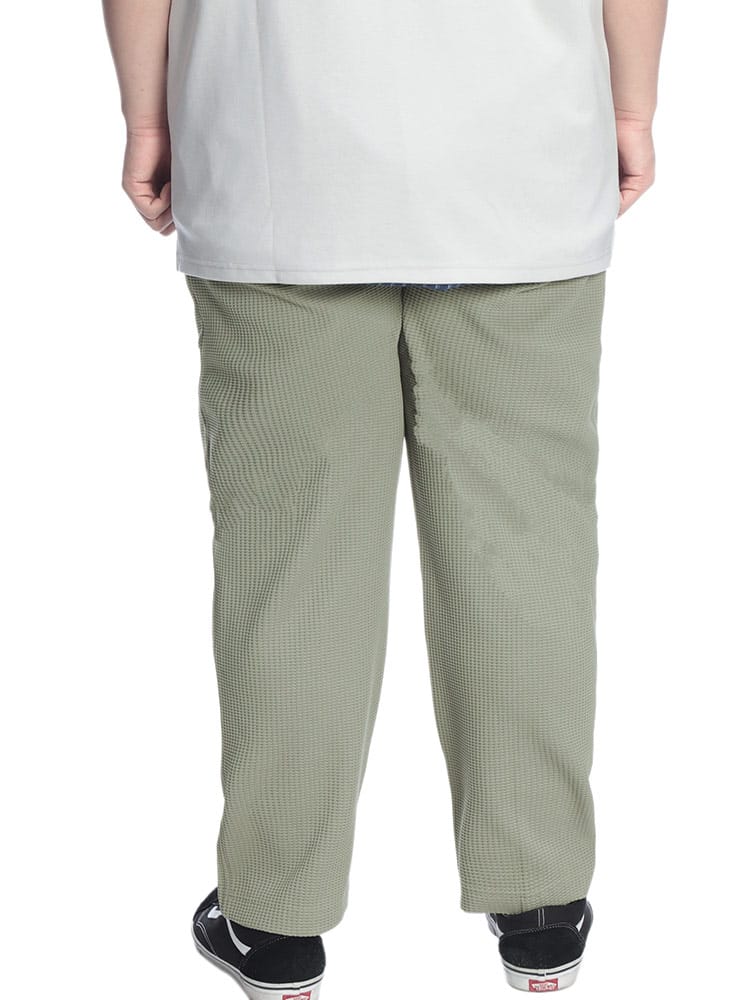 B&T CLUBから、圧倒的な開放感と上品なルックスを両立したヘビーワッフルイージーパンツが登場しました。最大の特徴は、高機能繊維「SOLOTEX(ソロテックス)」を配合したことによる優れたストレッチ性と形態安定性です。肉厚で凹凸感のあるヘビーワッフル生地を使用しており、肌離れが良く、リラックス感のあるワイドシルエットながら膝抜けや型崩れを抑えます。ウエストは調整可能なイージー仕様で、長時間の着用でもストレスフリー。ワークテイストな素材感と現代的な機能性が融合し、タウンユースからおうち時間まで幅広く活躍します。同素材のジャケットと合わせたセットアップスタイルもおすすめの一本です。