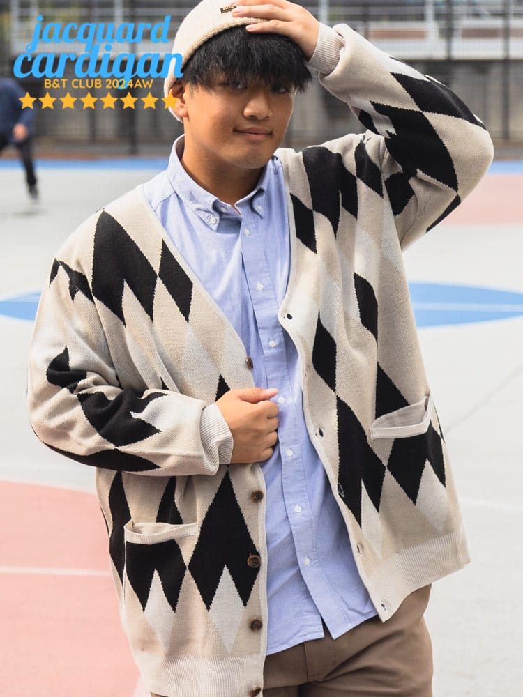 B&T CLUBの12G ジャガード カーディガンは、上質な素材と洗練されたデザインが特徴のカーディガンです。総柄のジャガード織りで、視覚的に魅力的なディテールが際立ちます。12ゲージの編み目は程よい厚みで、季節を問わず着用可能。大人のカジュアルスタイルにぴったりの一枚で、どんなシーンでも上品さを演出します。快適な着心地と高い耐久性を兼ね備えたこのカーディガンは、ワードローブの定番として活躍します。