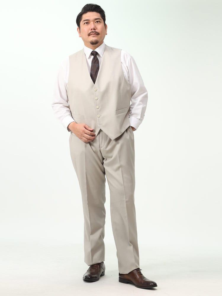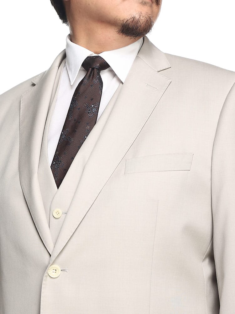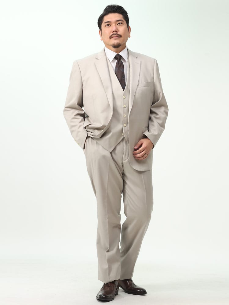 仕様 :ジャケット外側ポケット数×3つ / 内側ポケット数×4つ / シングル2つボタン / 背抜き / セッパタイプ / 額縁あり / サイドベンツ / ベスト外側ポケット数×2つ / スラックス外側ポケット数×4つ / ジップフライ / ノータック / ウエスト調節アジャスター / ツーパンツ