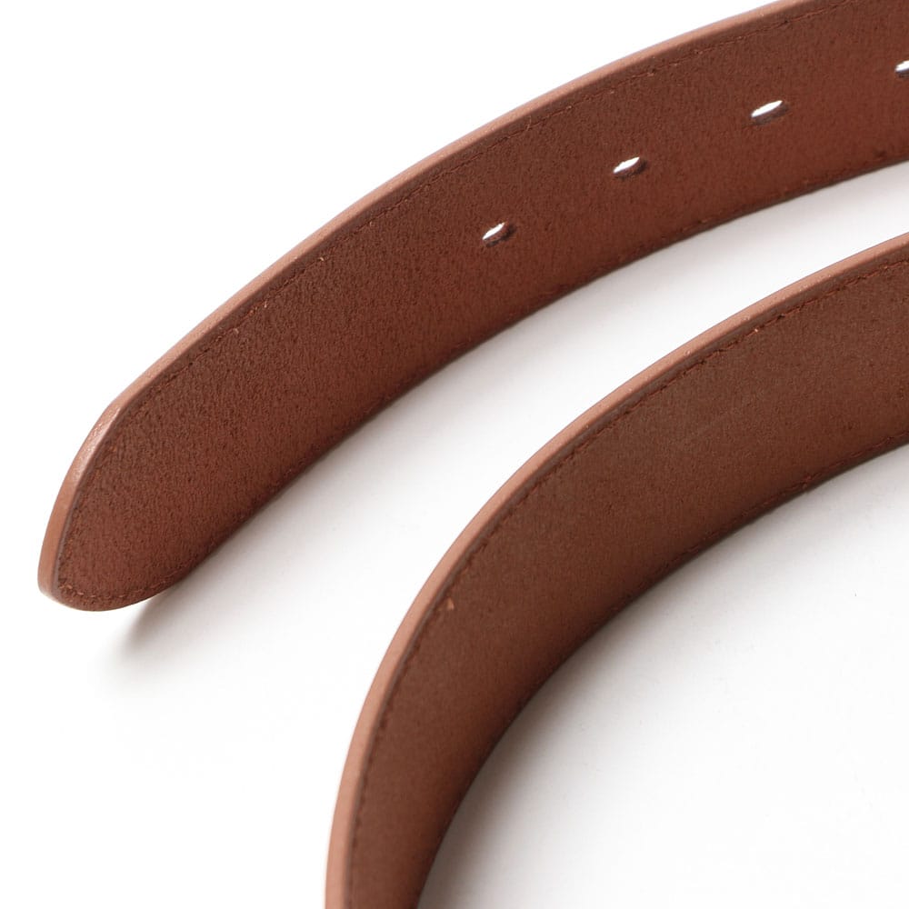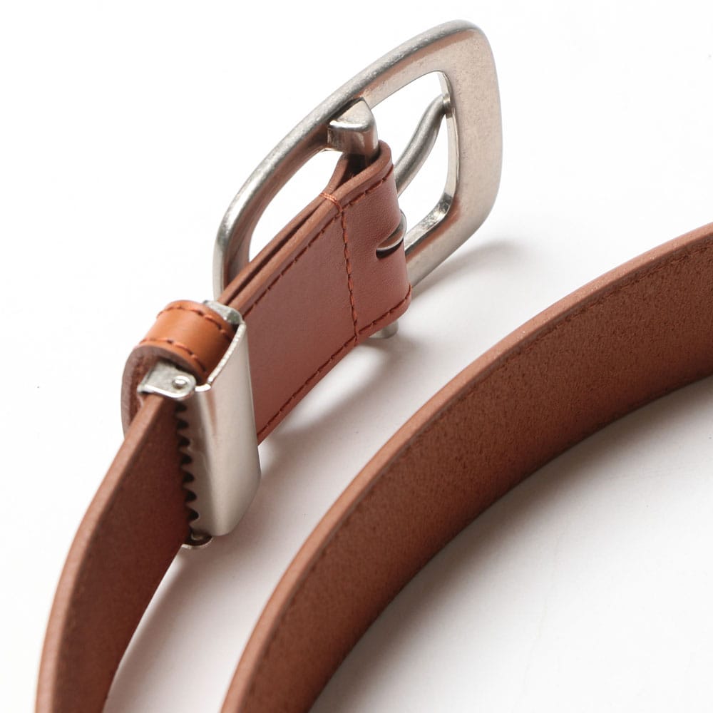 エイジングを楽しんでいただける牛革を使用したピンバックルベルト。噛み合せ留めタイプだから、長さ調節も可能です。ビジネスシーンにはもちろん、デイリーユースにも使っていただける万能なアイテム。