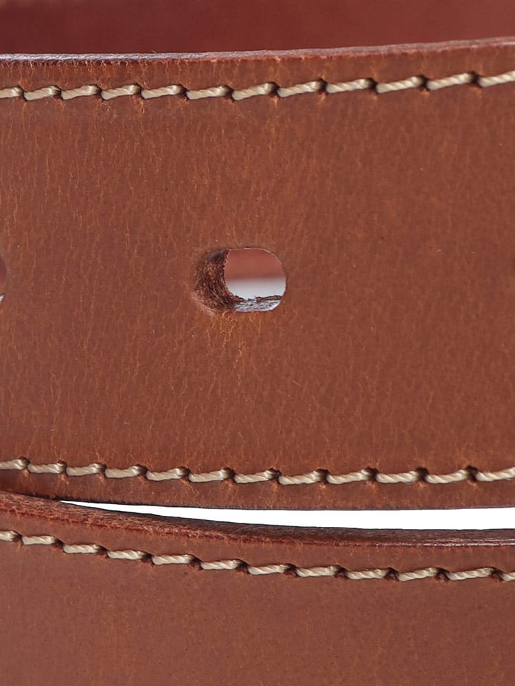 【Levi's】品格とカジュアルが融合したステッチワークが映える本革ベルト。ジーンズの象徴Levi's(リーバイス)の上質な素材感とディテールへのこだわりが詰まったレザーベルト。最大の魅力は、タフな牛革(カウスキン)の質感を引き立てる、精巧なステッチデザインです。縁に沿って施されたステッチが、レザーの重厚感に軽やかなリズムを加え、デニムからカジュアルなトラウザーまで幅広いボトムスを格上げしてくれます。天然皮革ならではの、使うほどに艶が増し、深みを帯びていくエイジング(経年変化)は、まさに「育てる楽しみ」そのものです。機能面では、バックルを外して長さをカットできる「噛み合わせ留めタイプ」を採用。体型に合わせたミリ単位の調節が可能で、サイズ選びの不安がないため、大切な方へのギフトとしても自信を持って選んでいただけます。リーバイスの伝統が息づく堅牢さと、現代的なデザインセンス。毎日のコーディネートに寄り添い、共に時を刻むパートナーとして相応しい逸品です。