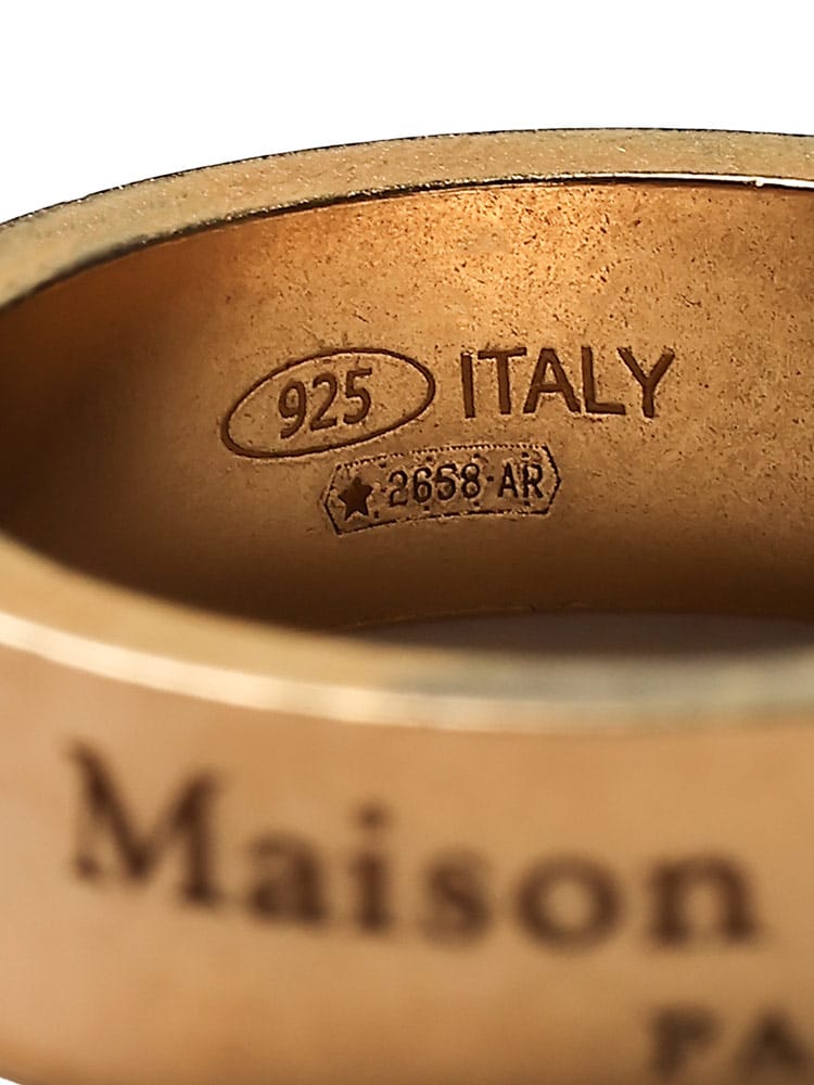 メゾン マルジェラのアイコニックなナンバーロゴが刻まれた、シンプルながらも存在感のあるシルバーリングです。6mm幅のフラットなデザインが、どんなスタイルにも合わせやすく、デイリーユースにぴったり。無駄を削ぎ落としたミニマルなデザインは、洗練された大人の男性の手元を飾ります。シルバー100%の上質な素材感と、ブランドの哲学が込められたデザインは、長く愛用できるアイテムです。大切な方へのプレゼントにもおすすめです。