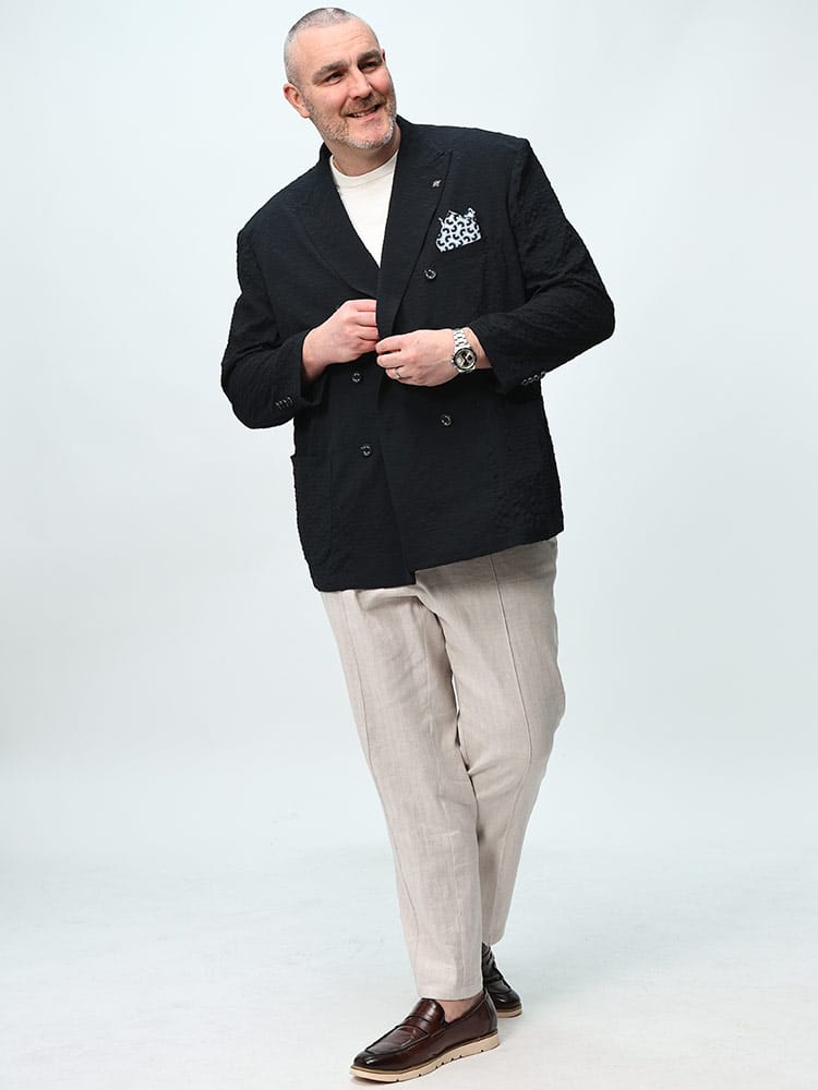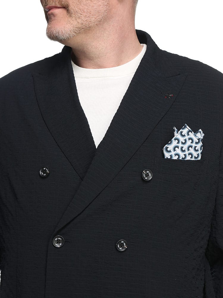 G-STAGEのドビーサッカーチーフ付きダブル6ツ釦ジャケットは、エレガントなスタイリングを提供する上質なアイテムです。独特のドビーサッカー生地を使用し、軽やかで通気性に優れた着心地を実現。内蔵のチーフが洗練されたアクセントを加え、ダブルブレストの6ツ釦デザインがクラシカルでモダンな印象を演出します。フォーマルからカジュアルまで幅広く対応する、洗練されたジャケットです。