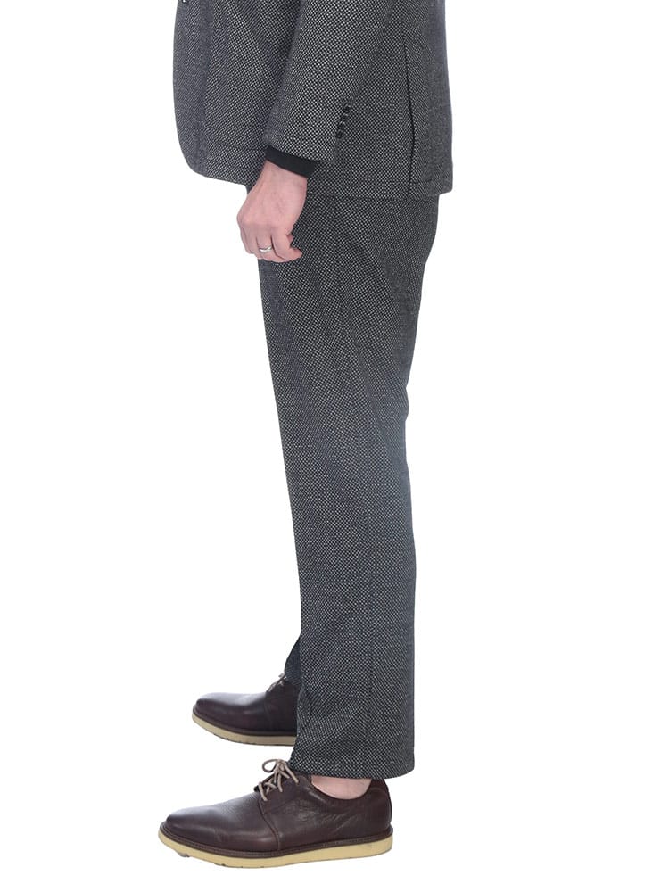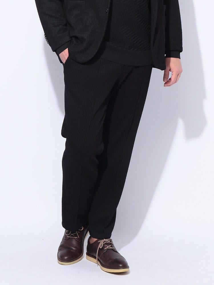 しなやかなジャージ素材で、ストレスフリーな穿き心地を実現したG-STAGEのノータックパンツ。ウールミックス素材の落ち着いた風合いが、上品な印象を与えます。ウエストはドローコード仕様で調整も簡単。きれいめなルックスながら、リラックス感のある穿き心地で、幅広いシーンで活躍します。ウールをブレンドした温かみのあるジャージ素材が魅力のパンツ。高いストレッチ性で、動きに合わせて心地よくフィットします。ノータックのすっきりとしたシルエットは、脚を長く見せる効果も。カジュアルからきれいめまで対応する万能な一本で、同素材のジャケットとのセットアップもおすすめです。