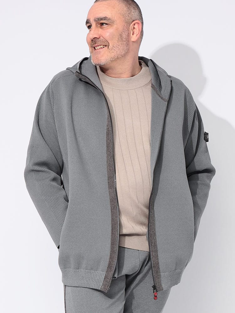 ニットの品格とパーカの手軽さを融合させた、G-STAGEのミラノリブ フルジップ パーカーです。14Gの緻密な編地が生み出すハリ感が、カジュアルなアイテムにきれいめな表情を与えます。高級感のあるルックスとストレッチ性を両立。ゆったりとした大きいサイズで快適に羽織れ、秋から冬にかけてのアウターやインナーとして大活躍します。ダブルジップ仕様で着こなしの幅が広がり、裾周りの調節も自在。外側には2つのポケットを完備。ブルゾン感覚でサッと羽織れる、大人のための上質ニットフーディーです。