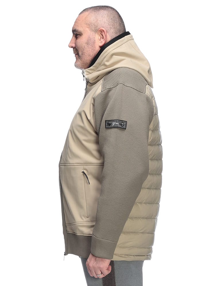 暖かさと軽やかさを両立した、G-STAGEのニットコンビ ダウンブルゾンです。前身頃には贅沢なダウン90%、フェザー10%の中綿を充填し、冷たい風からしっかりガード。さらに、前身頃裏にはフリース素材を使用し、極上の温もりを提供します。袖とフードに施された鹿の子編みニットは、伸縮性に富み、快適な着心地を実現。ゆったりとした大きいサイズながら、計算された異素材コンビがスマートな印象を演出します。ダブルジップ仕様で着こなしの幅が広がり、秋から冬のアウターとして手放せない一着です。