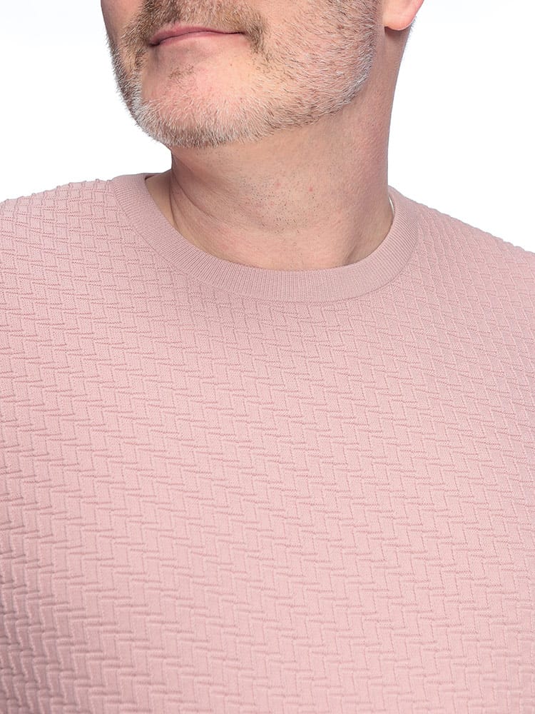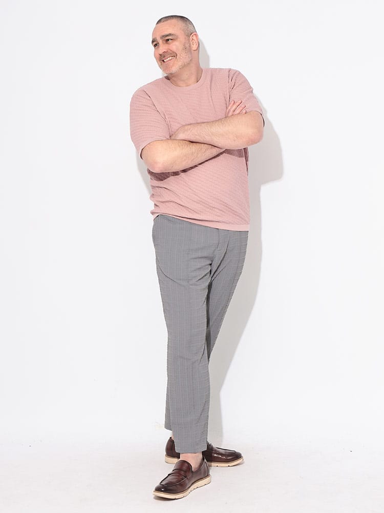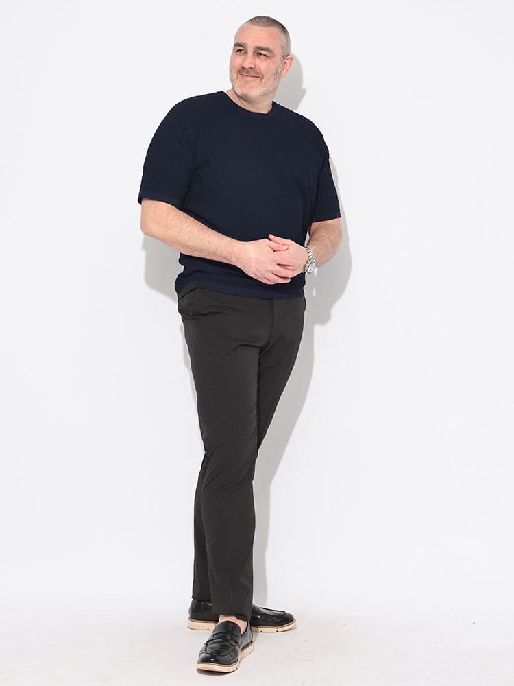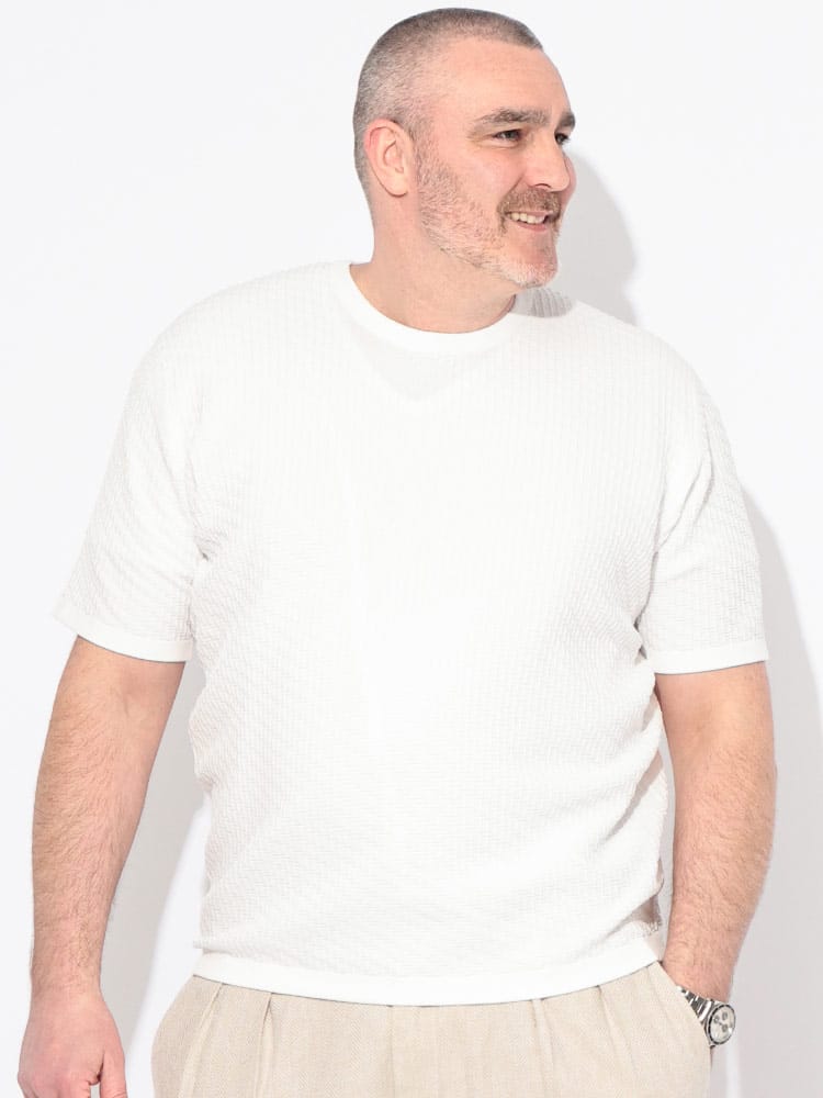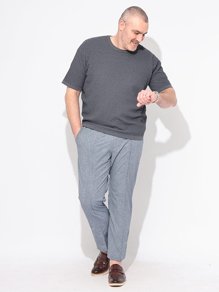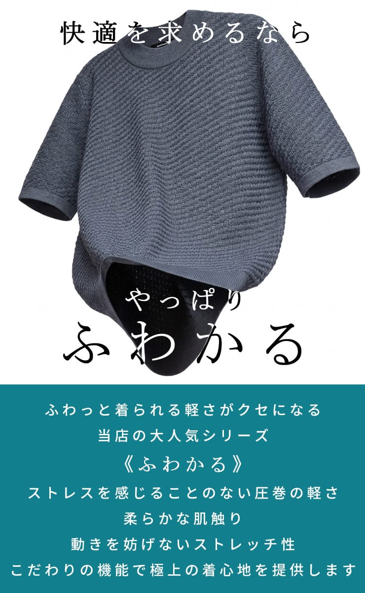 B&T CLUBが提案する「ふわかる」ブリスターニットクルーネックTシャツは、大きいサイズの男性が求める軽さと快適さを追求した一着です。3Lから展開される豊かな体型を包み込む柔らかな風合いが魅力で、独自のブリスター編みによる凹凸感が肌への接地面を減らし、汗ばむ季節もベタつかず清涼感のある着心地をキープします。驚くほどの軽量性とストレッチ性を兼ね備え、ニット特有の上品なドレープ感が無地のシンプルさの中に洗練された大人の品格を演出。型崩れしにくくシワにも強いため、春夏のビジカジシーンから休日のお出かけまで幅広く着回せます。Tシャツ感覚でラフに扱えるのに、一枚でサマになる立体的な表情が、スマートで清潔感溢れるスタイルを約束する高機能なニットトップスです。
