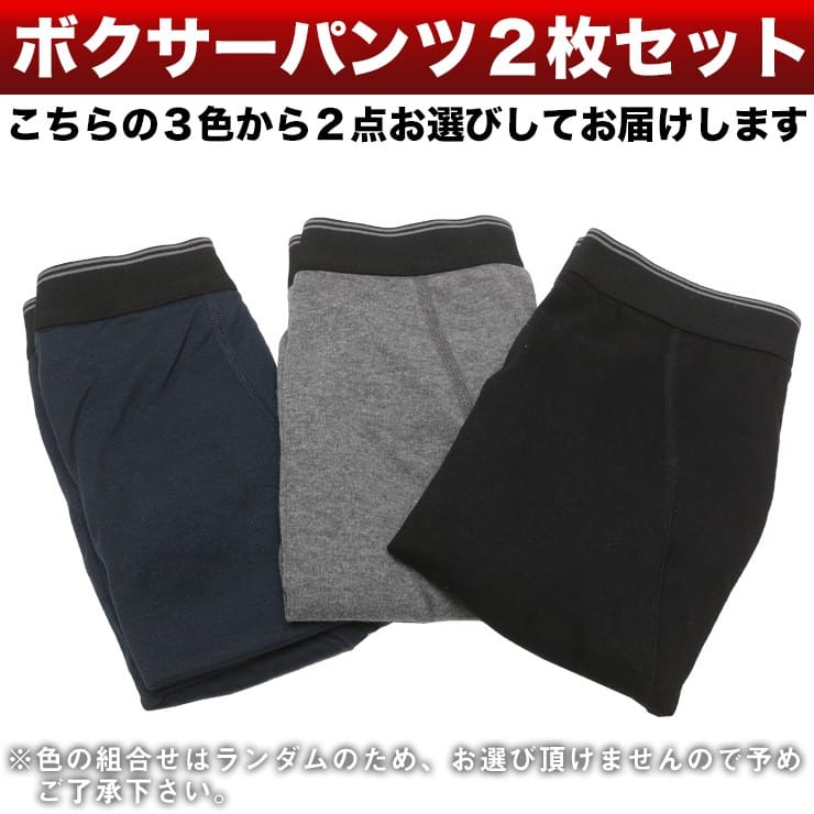 2枚セットのお得なボクサーパンツです。無地でシンプルな作りなので飽きにくく、長くご愛用いただけます。ウエストにゴムが入っているので、お腹周りのストレスがなく、ラフに穿けるのが魅力です。フロントは前開きタイプ。ご自分用はもちろん、年齢関係なく使えるのでプレゼントにもぴったりです。