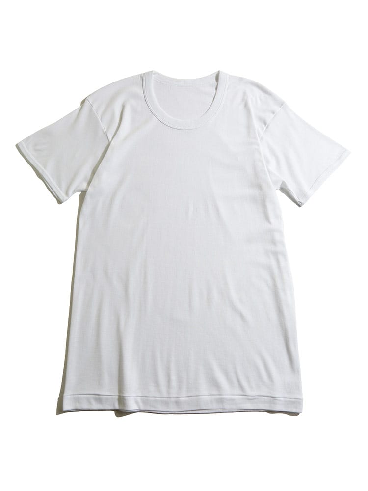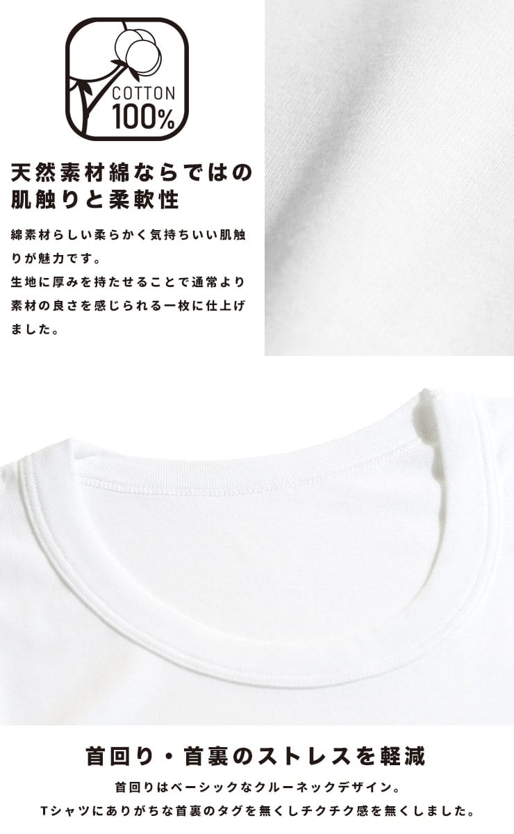 肌触りの良い綿100%の生地を使用した半袖アンダーTシャツです。首元はベーシックなクルーネックデザイン。フィット感のある柔らかい生地で仕上げているので、ワイシャツの下に肌着として使っていただけるアイテム。洗い替えに便利な2枚セット。