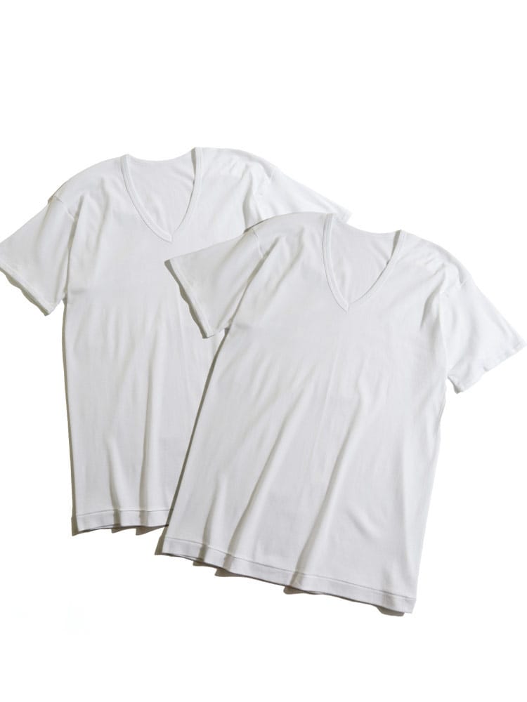 肌触りの良い綿100%の生地を使用した半袖アンダーTシャツです。首元はスッキリとしたVネックデザイン。フィット感のある柔らかい生地で仕上げているので、ワイシャツの下に肌着として使っていただけるアイテム。洗い替えに便利な2枚セット。