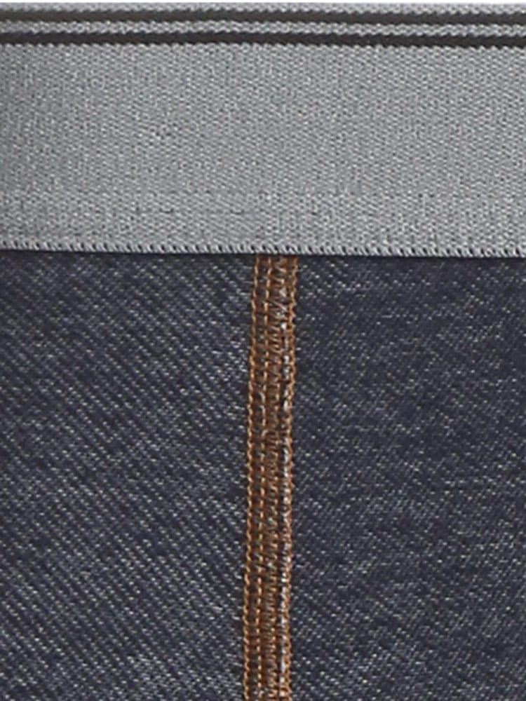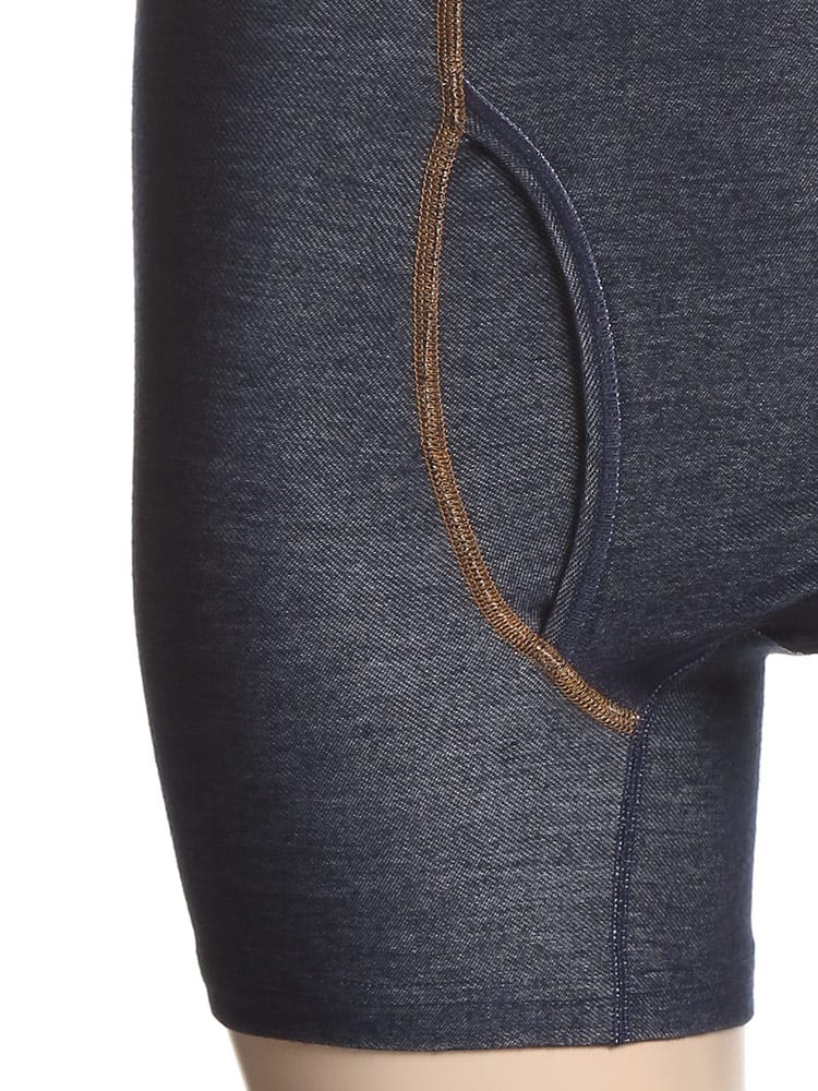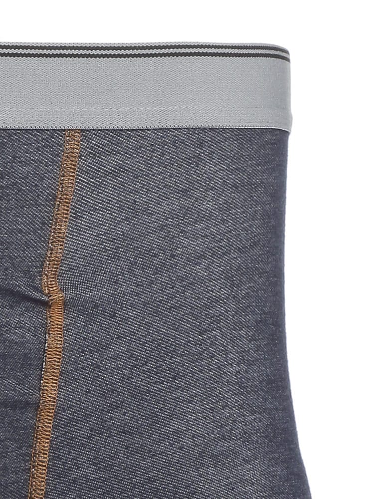 デニム調のデザインが魅力のボクサーパンツです。ゴム部分のラインデザインがワンポイント。ウエストにゴムが入っているので、お腹周りのストレスがなく、ラフに穿けるのが魅力です。フロントは前開きタイプ。ご自分用はもちろん、年齢関係なく使えるのでプレゼントにもぴったりです。