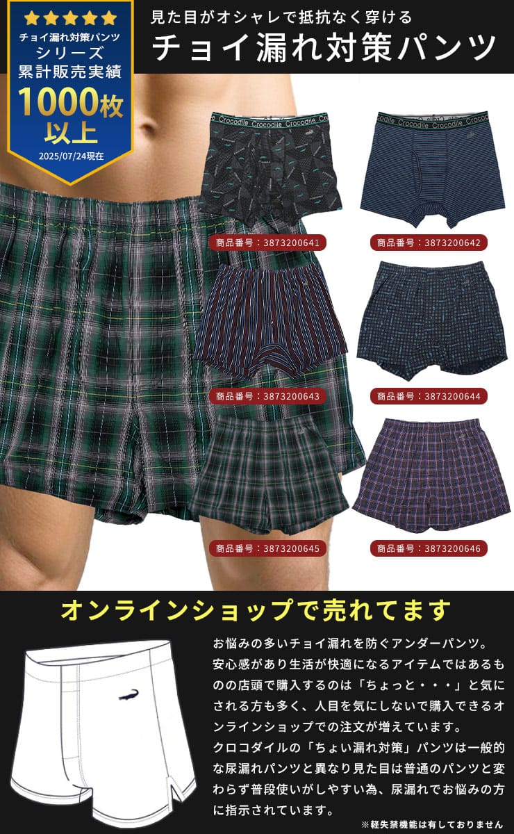 Crocodileの撥水チェック柄前開きエチケットトランクスは、実用性とスタイルを兼ね備えた高機能アンダーウェアです。撥水加工を施した素材を使用し、予期せぬ小さなトラブルからもしっかり保護。クラシックなチェック柄で洗練された見た目を実現し、前開きデザインで日々の使用に便利。どんなシーンでも快適に過ごせる、信頼のおけるトランクスです。