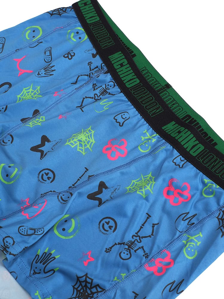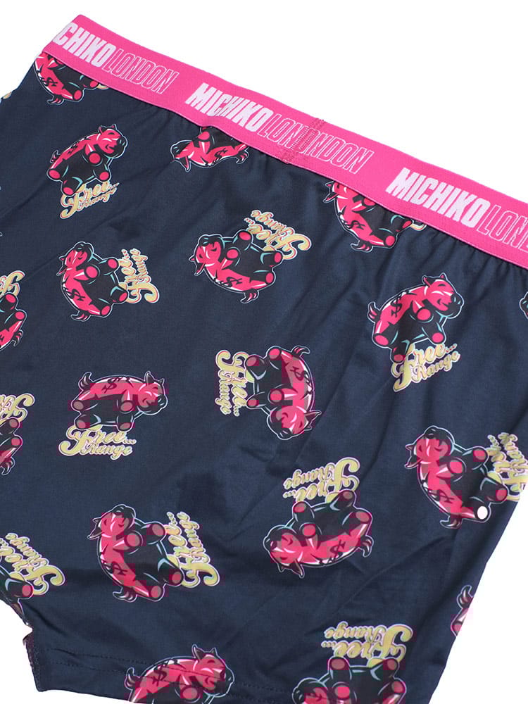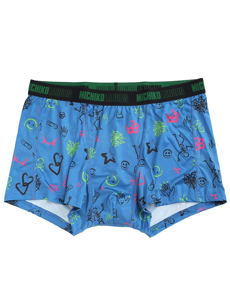 MICHIKO LONDONの前閉じボクサーブリーフは、ストレッチ性に優れた軽量素材を使用し、快適な履き心地を実現しています。ポップでユニークなイラスト調の総柄がデザインされており、個性的でスタイリッシュな見た目が特徴です。デザイン性と機能性を兼ね備えたアイテムです。