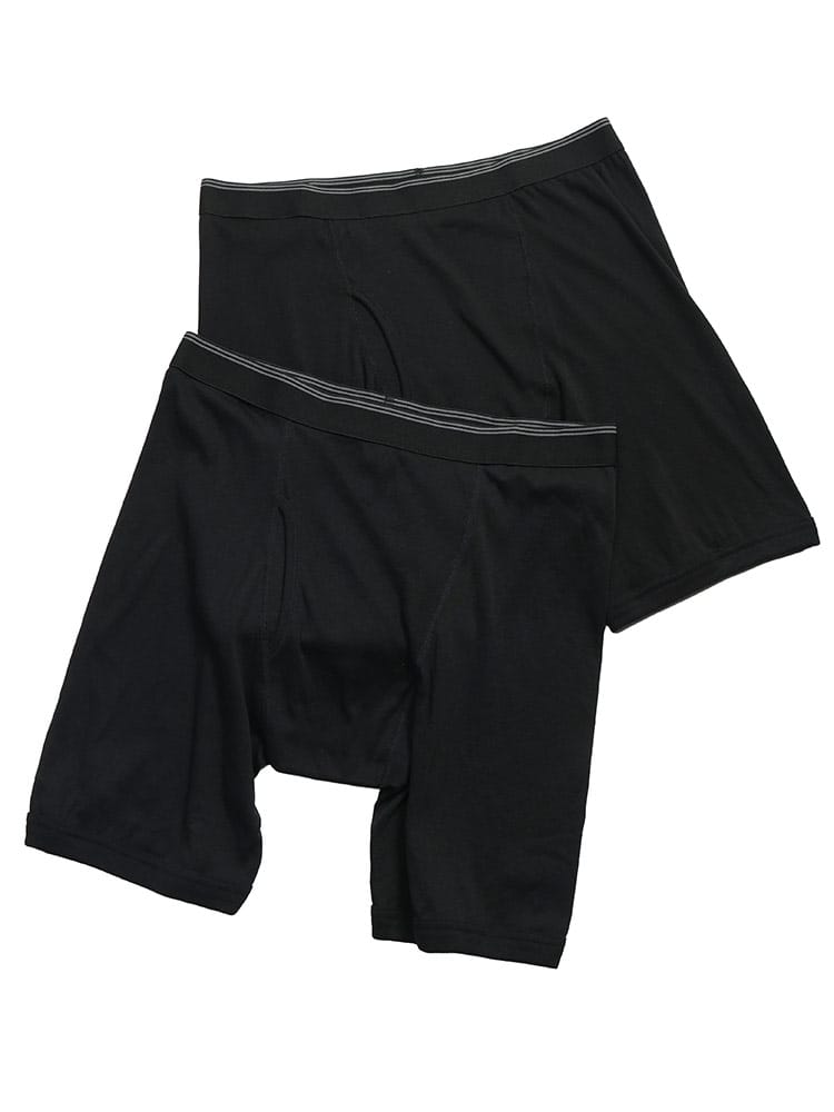 伸縮性のある柔らかな肌ざわりのB&T CLUBロング前開きボクサーパンツ2枚セット。綿混素材で快適な穿き心地を提供します。ゆったりとしたサイズ感で、日常使いに最適なベーシックなデザインです。
