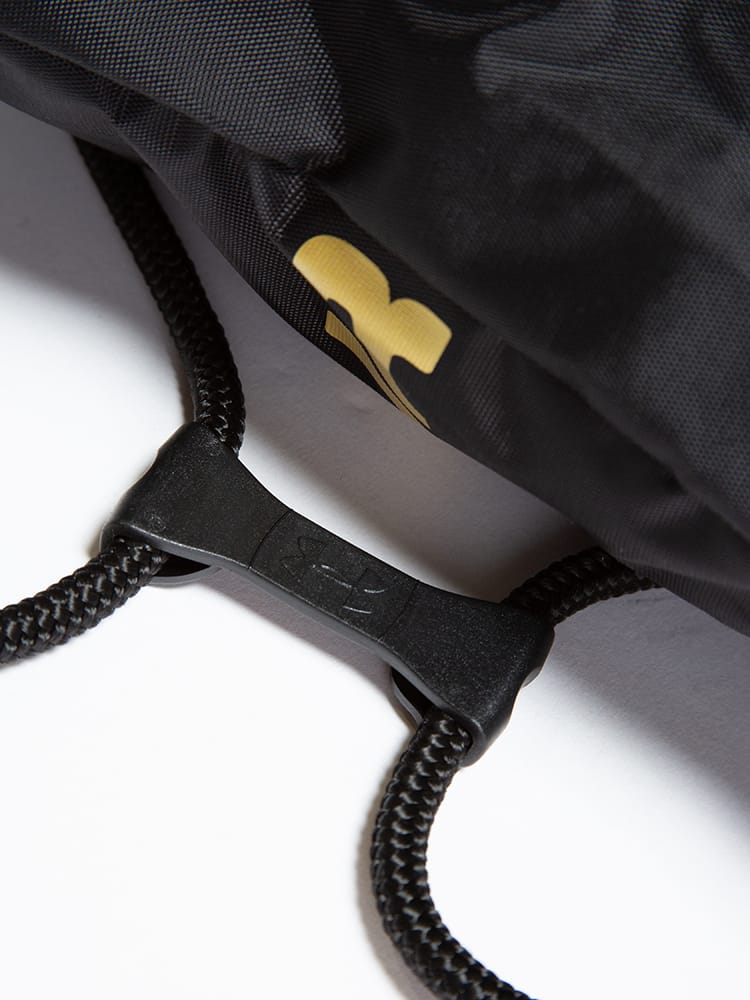 耐久性に優れた素材で損耗を防止。スターナムクリップでコードをしっかりキープ。ドローコードで簡単に開閉。シューズ1足+公式サイズのバスケットボール1個を収納可能。100%ポリエステル。