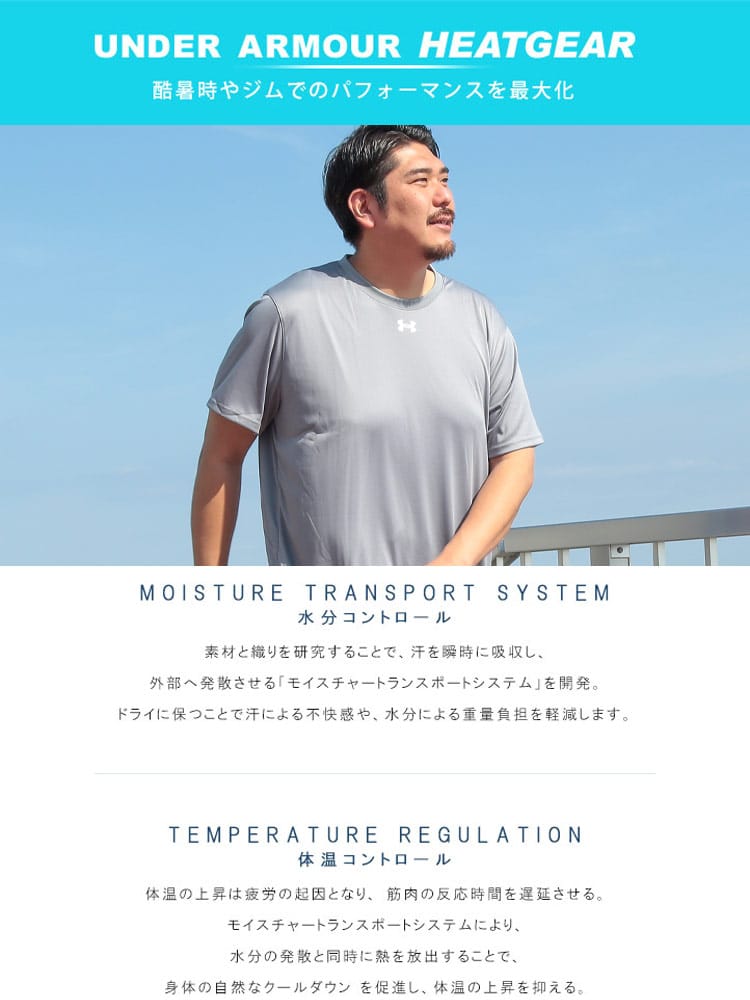 アンダーアーマーTEAM SHORT SLEEVE SHIRT(チーム ショートスリーブ シャツ)首元のワンポイントロゴがシンプルながら目を惹く半袖Tシャツです。汗を瞬時に吸収し、外部へ発散させる【モイスチャートランスポートシステム】を独自に開発した生地を使用しています。ドライに保つことで不快感や水分による重量負担を軽減してくれます。また、水分の発散と同時に熱を放出する事でクールダウン効果があり、真夏でも体温の上昇を抑える事が可能。とっても軽量でまるで何も来ていないかの様な感覚です。4方向への高い伸縮性で動きやすくパフォーマンスがあがります!【サイズ感】LOOSE : ゆったりと着用するタイプ。長時間におよぶトレーニングや移動時など、幅広いシーンに対応するリラックスモデルです。日本規格ですが、身幅袖幅ともにゆったりとしています。