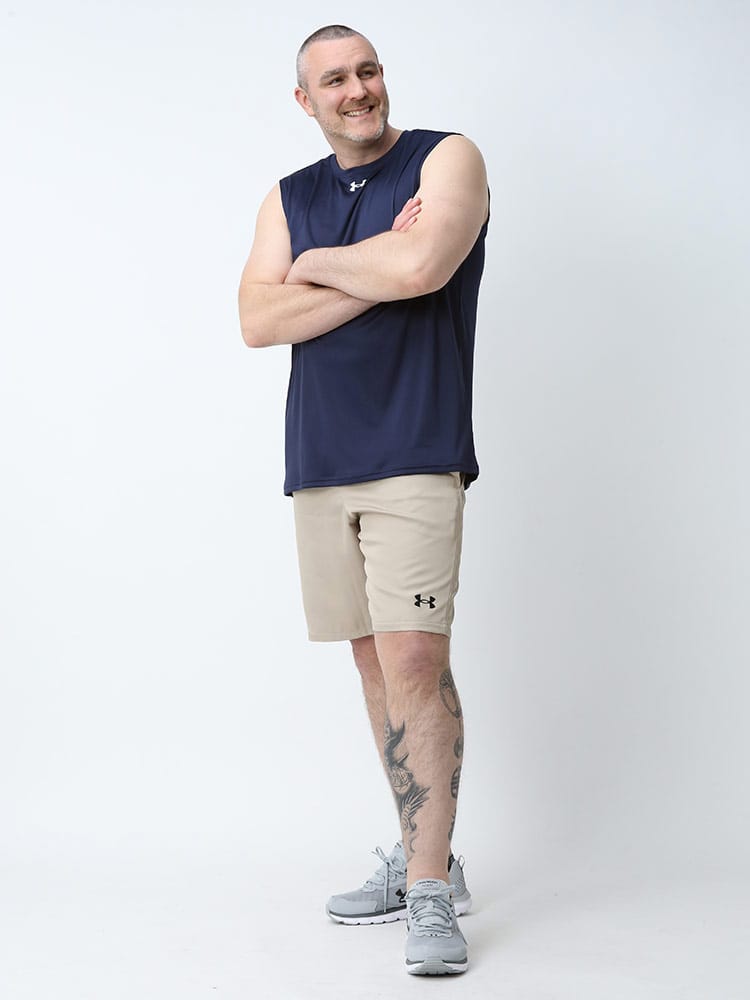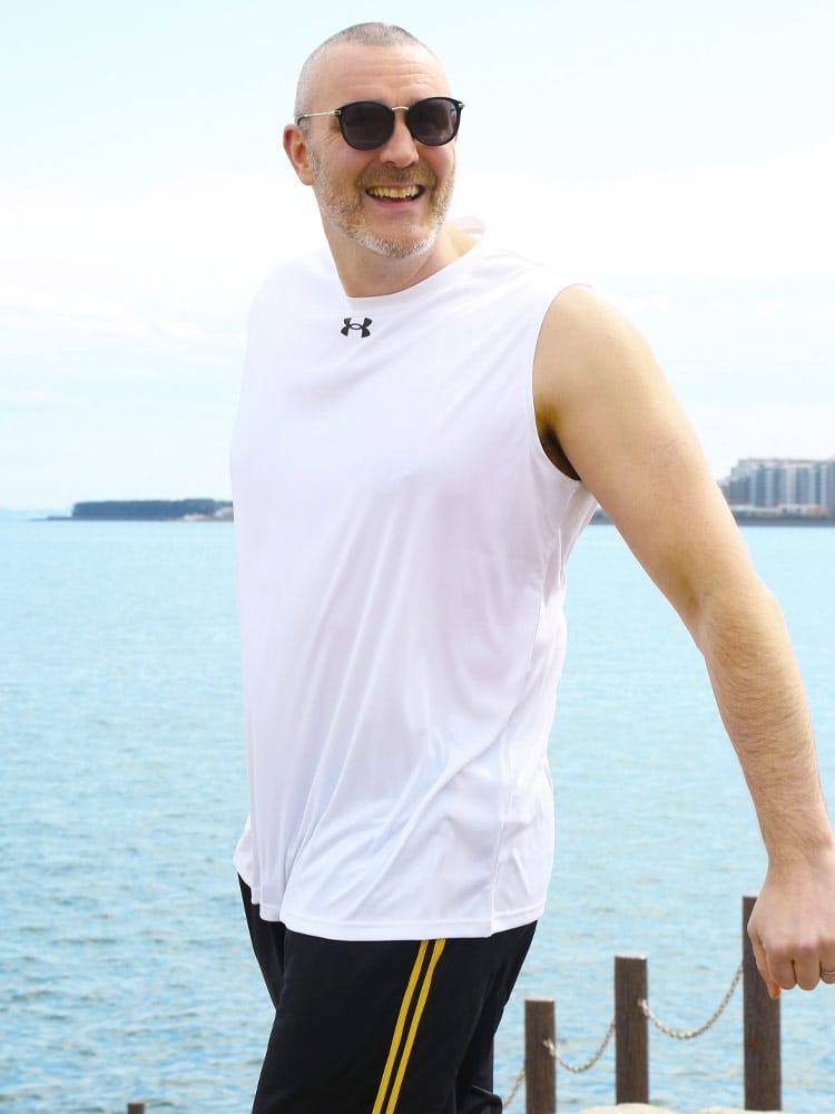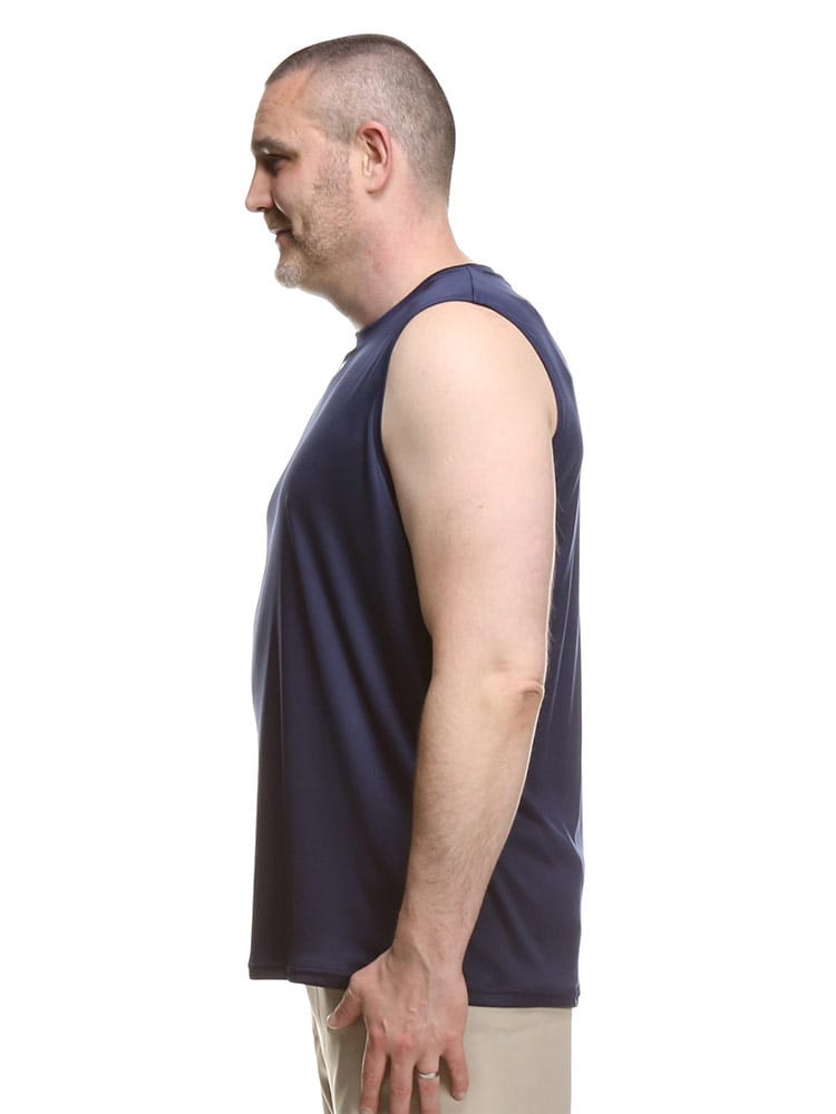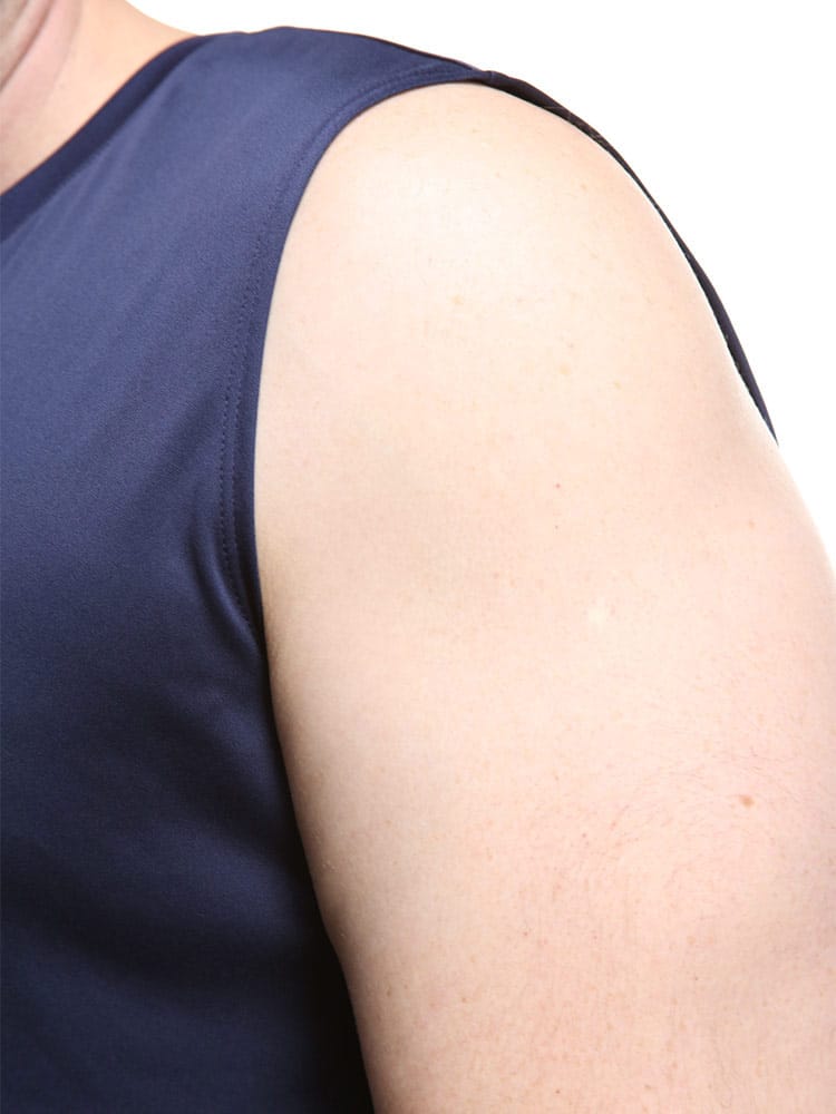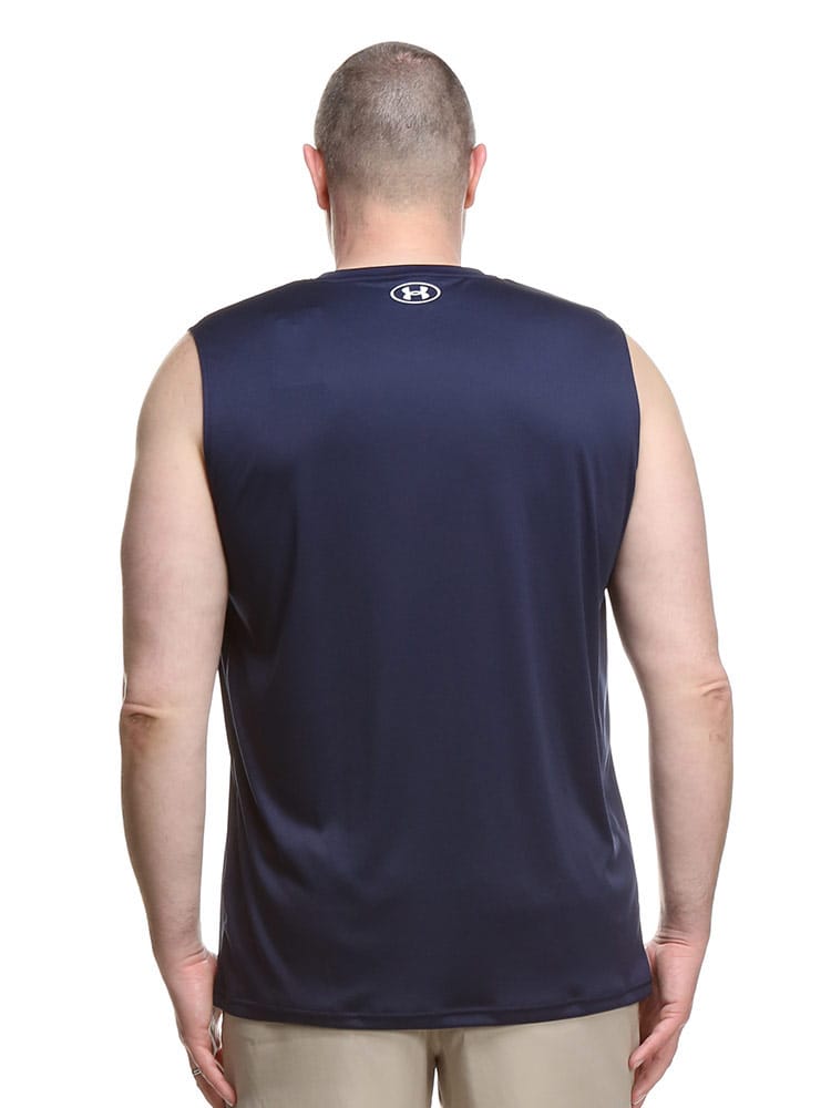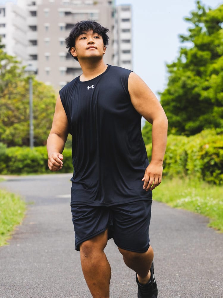ゆったりと着用するタイプ。長時間におよぶトレーニングや移動時など、幅広いシーンに対応するリラックスモデル。ロゴがワンポイントデザインのノースリーブ Tシャツ TEAM SLEEVE LESS SHIRT。バックネックのロゴプリントもポイントです。アクティブシーンに最適な一枚です。