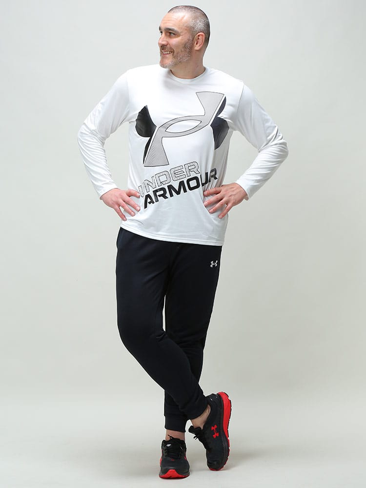 ゆったりと着用するタイプ。長時間におよぶトレーニングや移動時など、幅広いシーンに対応するリラックスモデル。左ポケットのロゴがポイントになったスウェット ジョガーパンツ TEAM SWEAT JOGGER。ウエストはゴムとドローコード付きでサイズ調整可能。裾はリブデザイン。