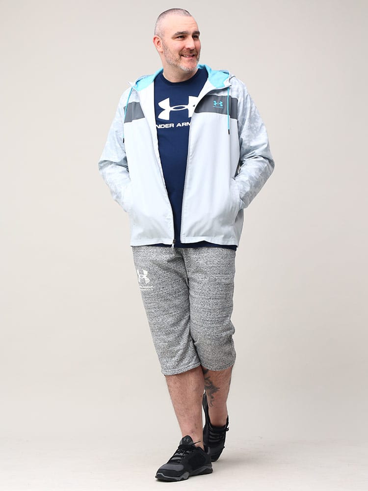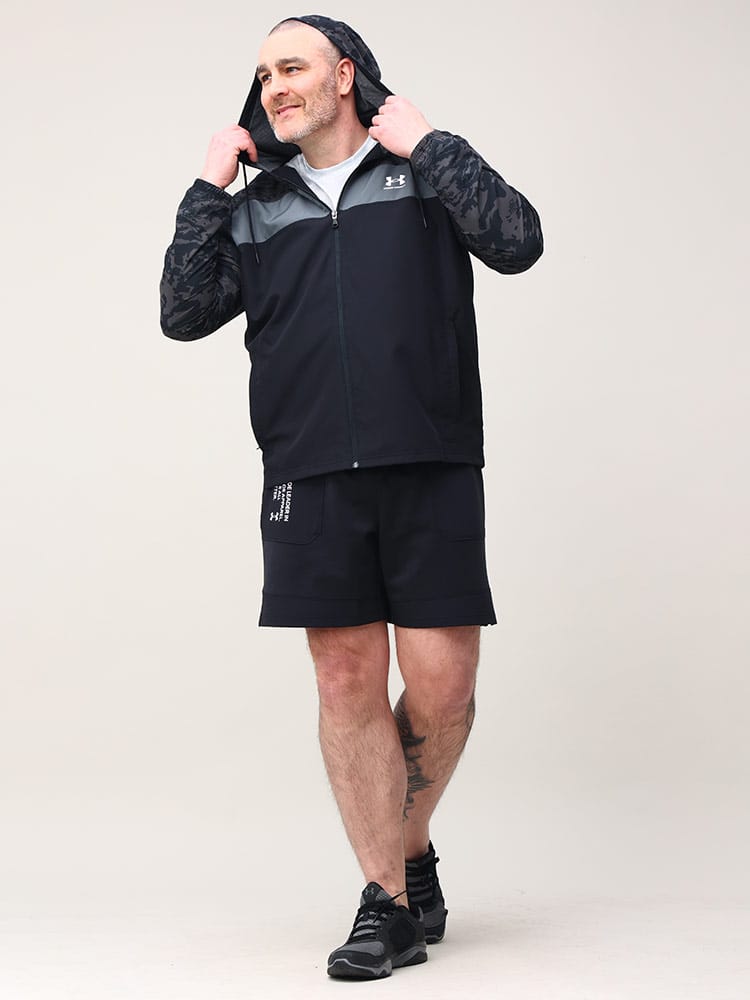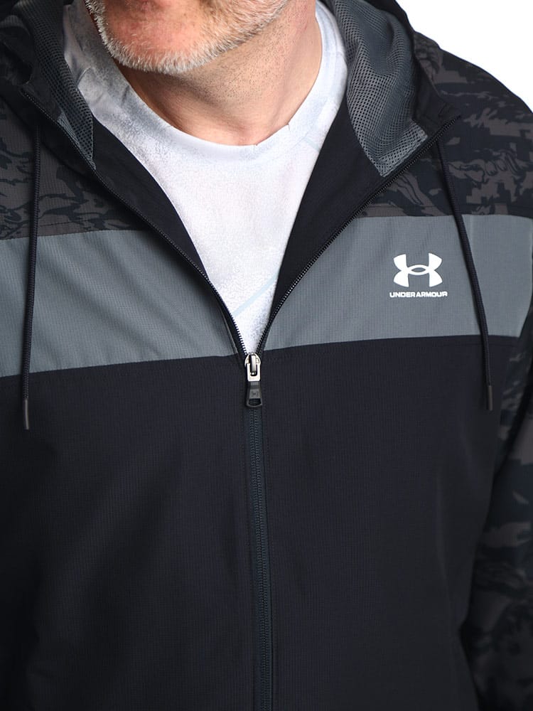 大きいサイズ メンズ UNDER ARMOUR (アンダーアーマー) 日本規格 LOOSE STORM 裏メッシュ フルジップ パーカー SPORTSTYLE WNDBKR PRINTED