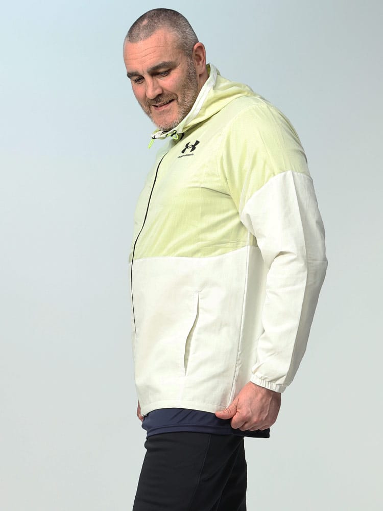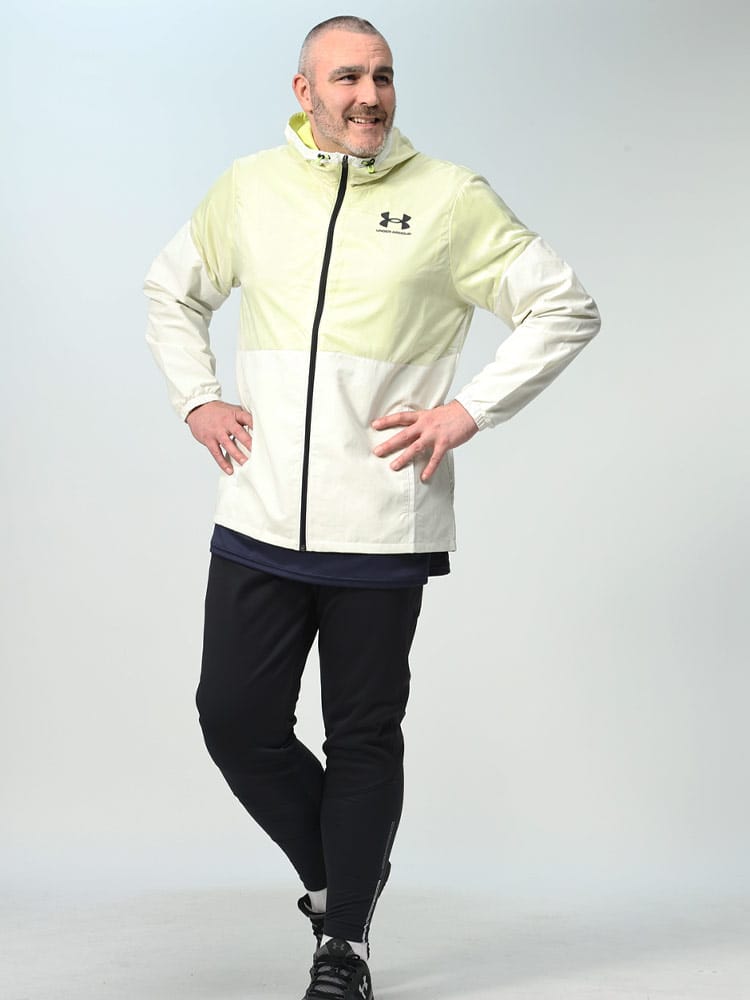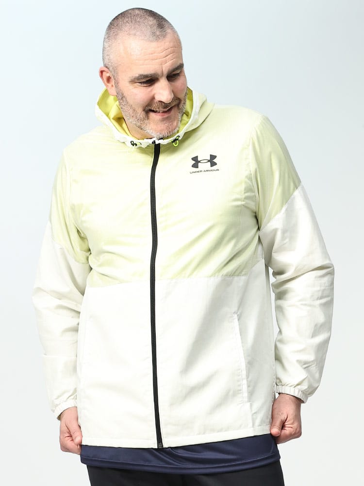 ・商品名:UAメッシュ ラインド ウーブン ジャケット(トレーニング MEN)・フィット:ルーズ・UA Stormテクノロジーが通気性と撥水性を両立・メッシュの裏地がサラッとした着心地を提供・STORM(ストーム):撥水加工を施したファブリックが雨や雪をはじき、悪天候下でもドライで快適な状態を保つ・商品番号:1381343