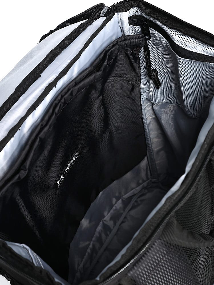 耐久性の高いターポリン素材に撥水加工を施した、40Lの大容量の機能性バックパック。内側には小物が持ち運べるサックパックを搭載。ラップトップ用収納スペース付きでビジネス使用にも最適です!さらにボトルポケット付き。耐久性の高いターポリン素材を表面に使用。背面のパッドが背中をサポートし、高い通気性と快適な背負い心地を提供。メインコンパートメントとは別にパソコン用の収納部分あり。内側には取り外し可能なサックパックを搭載。ウォーターボトルポケットはスポーツをされる方には嬉しいシェイカーも入れられる幅となっております。物の出し入れを容易にする大きなサイドジップ。小物用収納スペース(上部とサイドにジップポケット1か所、内側にポケット2か所)を搭載。ショルダーストラップにはカードが入れられる収納スペース搭載。バックパックの底のリフレクトテープが視認性を確保。STORM(ストーム):撥水加工を施したファブリックが雨や雪をはじくのでアウトドアにも安心してご使用いただけます。最強と言っても過言ではないバックパックで、お出かけや旅行、ビジネスなど多方面で活用すること間違いなしです。プレゼントにもおすすめです!