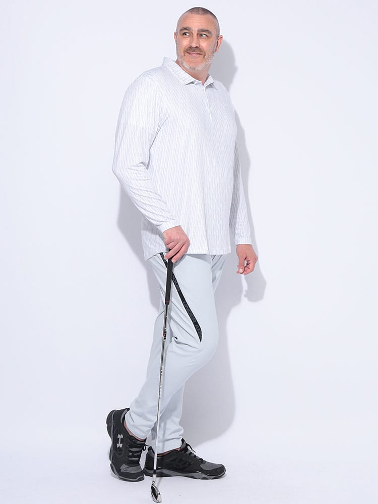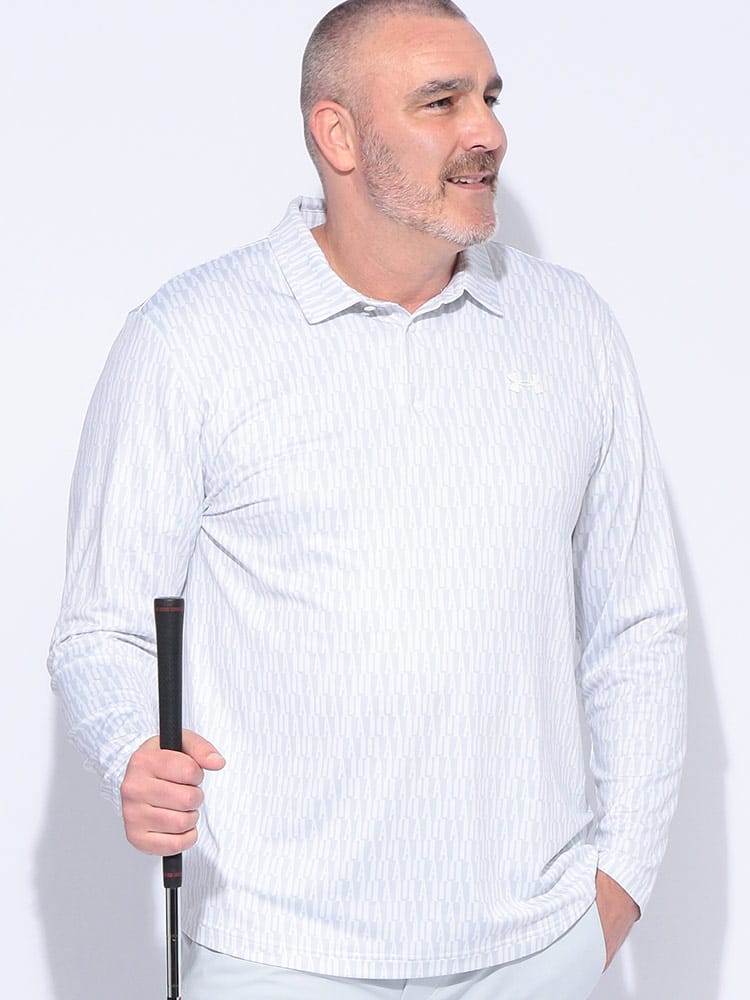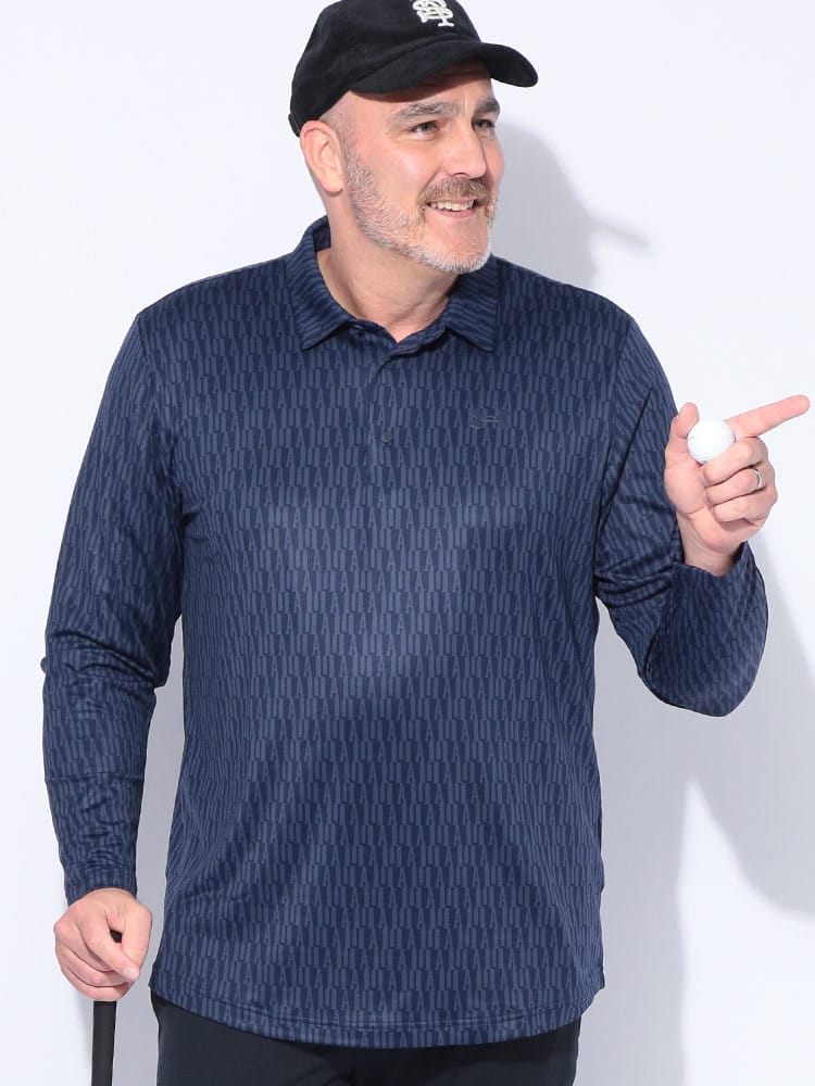 落ち着いたカラーにロゴの総柄をデザインし、コース上でも一際存在感を放つ洗練された一枚です。優れた通気性とストレッチ性を備えた生地が、プレー中のあらゆる動きにフィット。ストレスなくスイングできるため、最高のパフォーマンスを引き出します。吸汗速乾性も兼ね備えているので、汗をかいてもべたつかず、常にドライで快適な着心地をキープ。ラウンド中の集中力を途切れさせません。大きいサイズ展開で、体型を気にせずゆったりと着られるのも魅力です。ゴルフはもちろん、普段のトレーニングやアクティブな休日にも活躍します。機能性とデザイン性を両立した、大人のためのゴルフウェアです。